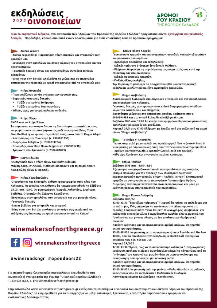 Οι «Ανοιχτές Πόρτες», η δράση των Οινοποιών Βορείου Ελλάδος, επιστρέφουν για το 2022, το σαββατοκύριακο 28 & 29 Μαΐου.