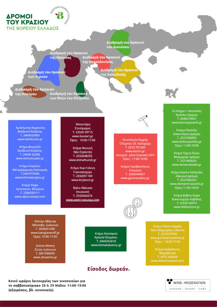 Δημιουργήστε τη δική σας οινική διαδρομή, ανάλογα με την περιοχή που θα βρίσκεστε ή επιθυμείτε να ταξιδέψετε στις 28 και 29 Μαΐου, και επισκεφθείτε όσα περισσότερα οινοποιεία μπορείτε.