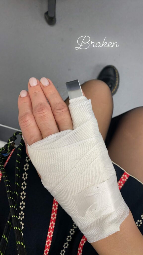 Στη συνέχεια, η Κατερίνα Παπουτσάκι ανέβασε φωτογραφία με το δεμένο της χέρι στο οποίο και τραυματίστηκε: