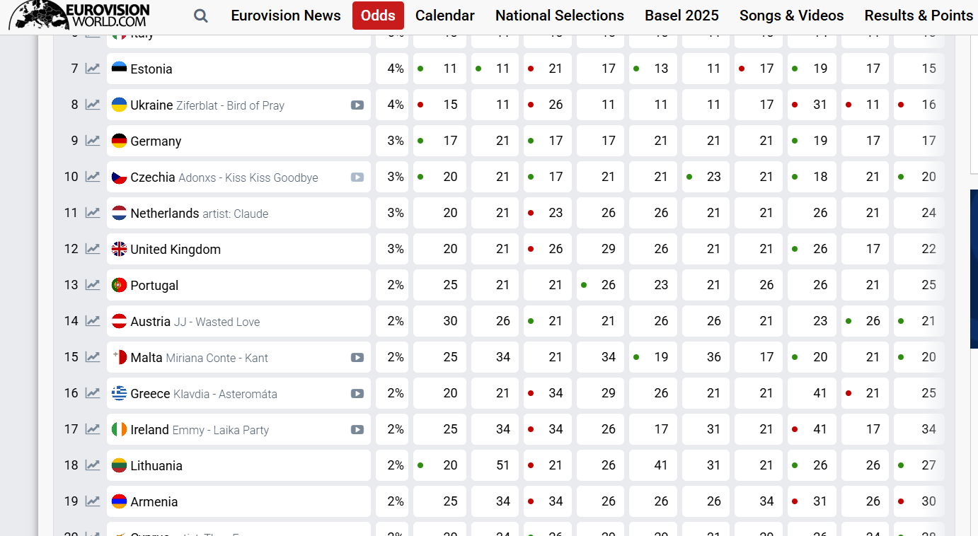 Να σημειωθεί ότι αρκετές χώρες ακόμα δεν έχουν βγάλει τραγούδι ωστόσο παίζονται ψηλότερα από την Ελλάδα.