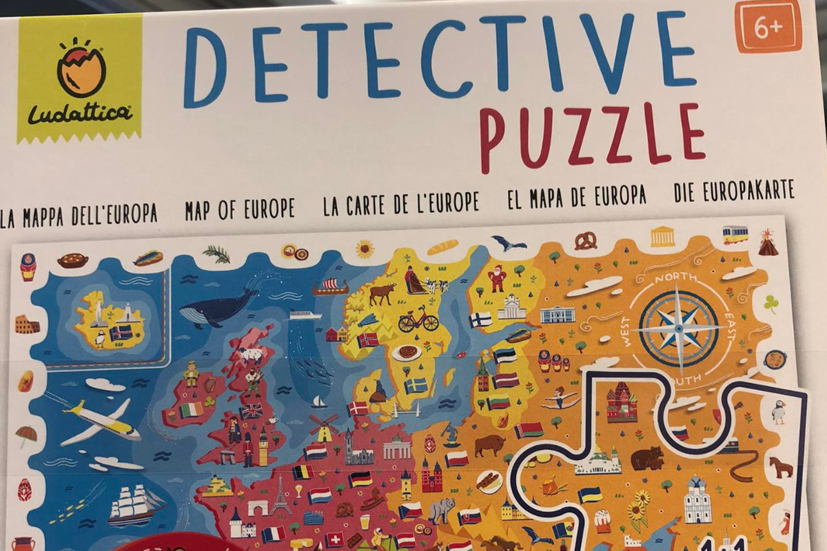 O χάρτης της Ευρώπης σε ένα υπέροχα εικονογραφημένο παζλ 108 κομματιών. Χρησιμοποιήστε τον ξύλινο μεγεθυντικό φακό που περιλαμβάνεται στη συσκευασία για να ταξιδέψετε πάνω από την Ευρώπη και να ανακαλύψετε γεωγραφικά τοπόσημα, ποτάμια, οροσειρές, μνημεία πολιτισμικής σημασίας καθώς και διάσημα χωριά και πόλεις με τα τοπικά, παραδοσιακά προϊόντα τους!
