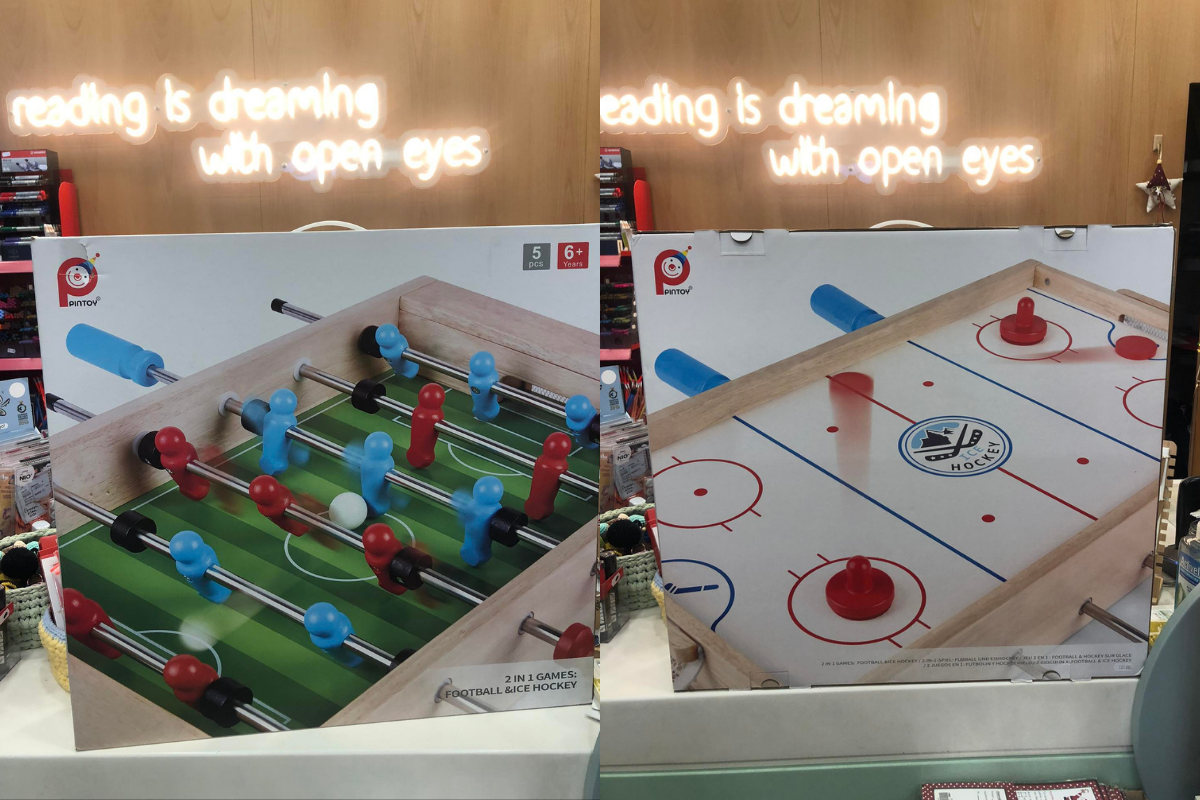 Ένα φλιπεράκι ποδοσφαιράκι και ένα φλιπεράκι ice hockey, σε ένα παιχνίδι με την ίδια τιμή.