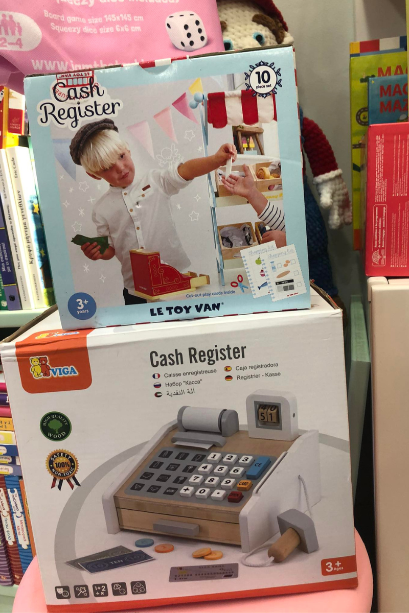 Με την βοήθεια αυτού του παιχνιδιού, το παιδί μπορεί να αναγνωρίζει και να μαθαίνει τι είναι ταμειακή μηχανή και πως λειτουργεί. Έτσι εκπαιδεύεται σε νέα πράγματα όπως είναι η έννοια των χρημάτων, τις αξίες των προϊόντων και το πλαίσιο των συναλλαγών.