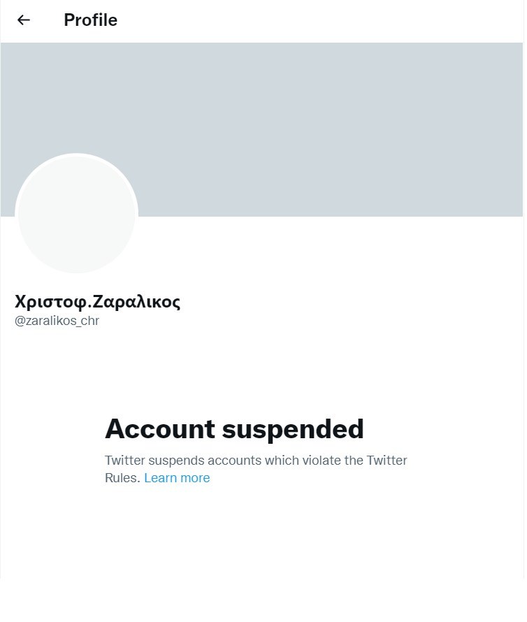 Έτσι, σήμερα, στις 26 Ιανουαρίου, οι χάκερς αποφάσισαν να ρίξουν για 2η φορά το προφίλ του γνωστού κωμικού με αποτέλεσμα όποιος επισκεφθεί τον λογαριασμό του Χριστόφορου Ζαραλίκου να αντικρίζει το εξής μήνυμα: «Ο λογαριασμός έχει ανασταλεί, το Twitter αναστέλλει λογαριασμούς που παραβιάζουν τους Κανόνες Twitter.»