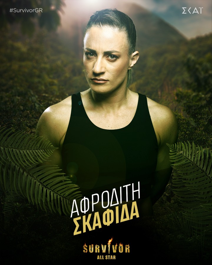Η Αφροδίτη Σκαφίδα είναι 40 ετών και είναι Ολυμπιονίκης στο άλμα επί κοντώ. Η ίδια φοίτησε στο Τμήμα Επιστημών Φυσικής Αγωγής και Αθλητισμού (ΤΕΦΑΑ) της Αθήνας. Έχει επτά πανελλήνια πρωταθλήματα, κατέρριψε 8 φορές το πανελλήνιο ρεκόρ, ενώ συμμετείχε στους Ολυμπιακούς Αγώνες το 2004 και το 2008 με την Εθνική ομάδα. Σήμερα, εργάζεται ως personal trainer και προπονήτρια στίβου. Το 2019 κατάφερε να φτάσει στους τέσσερις φιναλίστ για την Ελλάδα, αλλά δεν προκρίθηκε στον μεγάλο τελικό. Το Survivor θεωρεί πως δεν είναι ένα απλό παιχνίδι, αλλά αγώνας μέχρι τελικής πτώσης.
