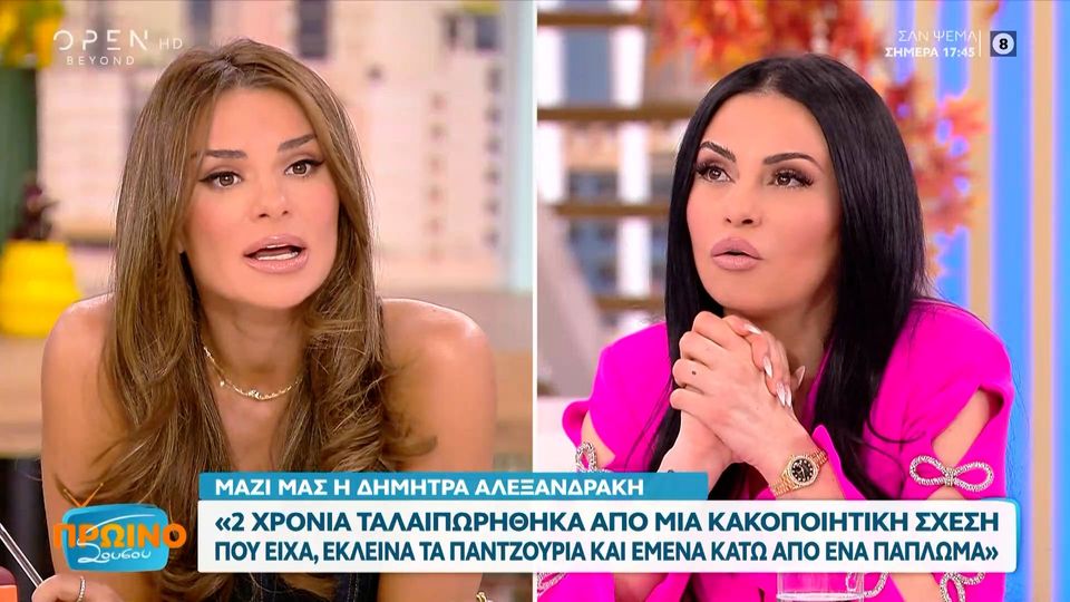 Καλεσμένη στο πλατό της εκπομπής «Πρωινό Σου Σου» ήταν σήμερα η Δήμητρα Αλεξανδράκη. Με αφορμή την συζήτηση που είχε με την Ελένη Τσολάκη, για την τοξική της σχέση, παρασύρθηκε.