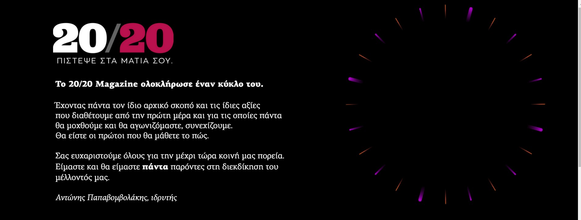«Με αμηχανία και άπειρη θλίψη, θέλουμε να σας ενημερώσουμε ότι το 20/20 Μagazine δεν βρίσκεται πια στον διαδικτυακό αέρα»