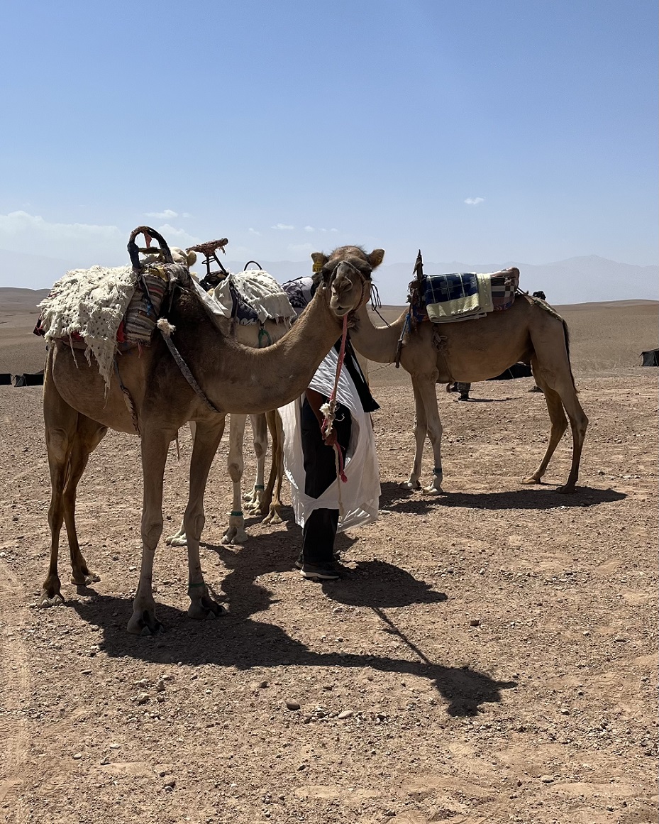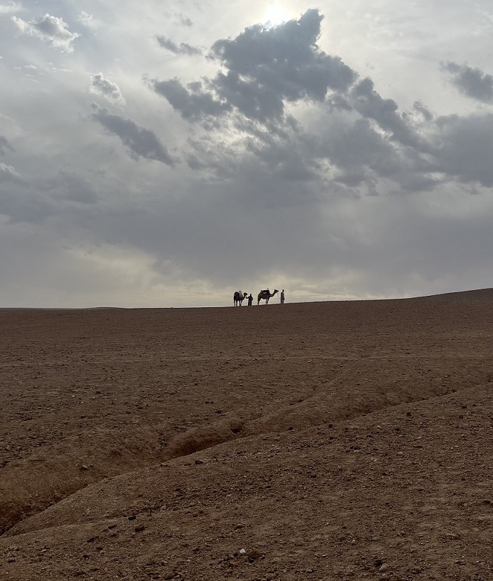 Μικραίνοντας πίσω η πόλη του Μαρακές, ανοίγεται μπροστά ένα διαφορετικό τοπίο. Στα πρώτα χιλιόμετρα της διαδρομής που ακολουθεί η ομάδα, οικοδομικοί γερανοί διακρίνονται αριστερά στις εκτάσεις παράλληλα με το δρόμο – σημάδι ότι η πόλη θα επεκταθεί κι άλλο.