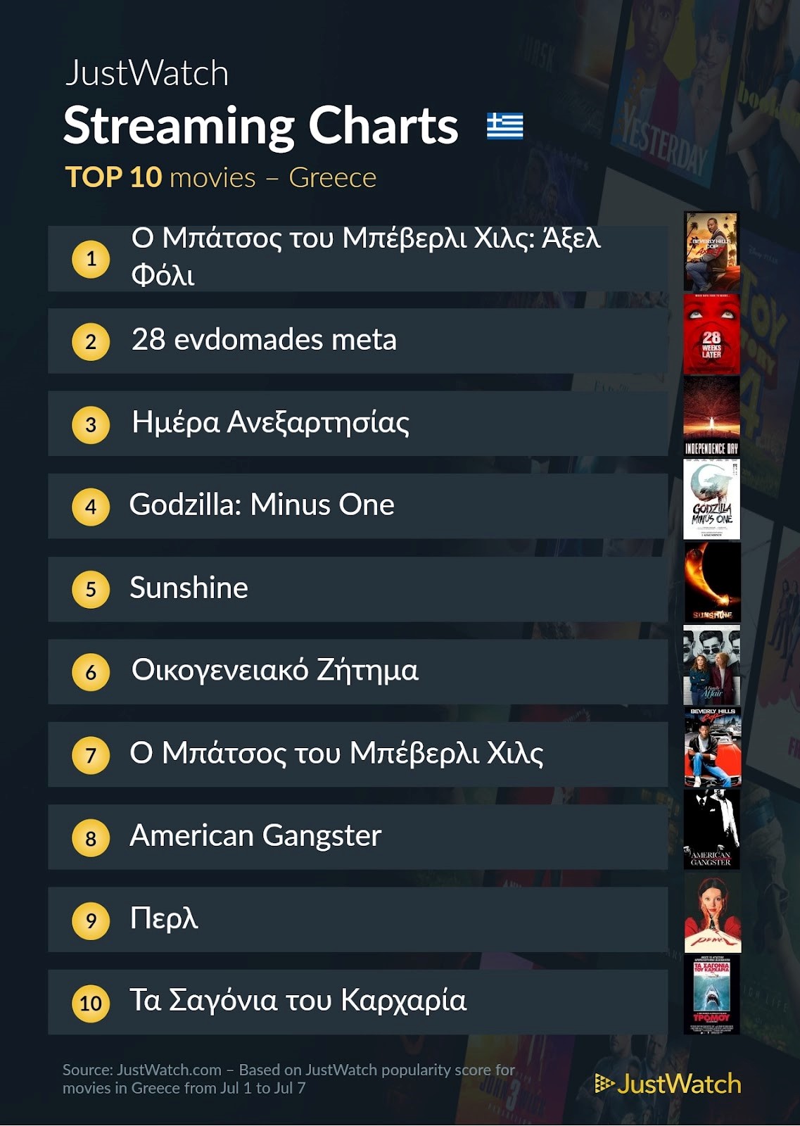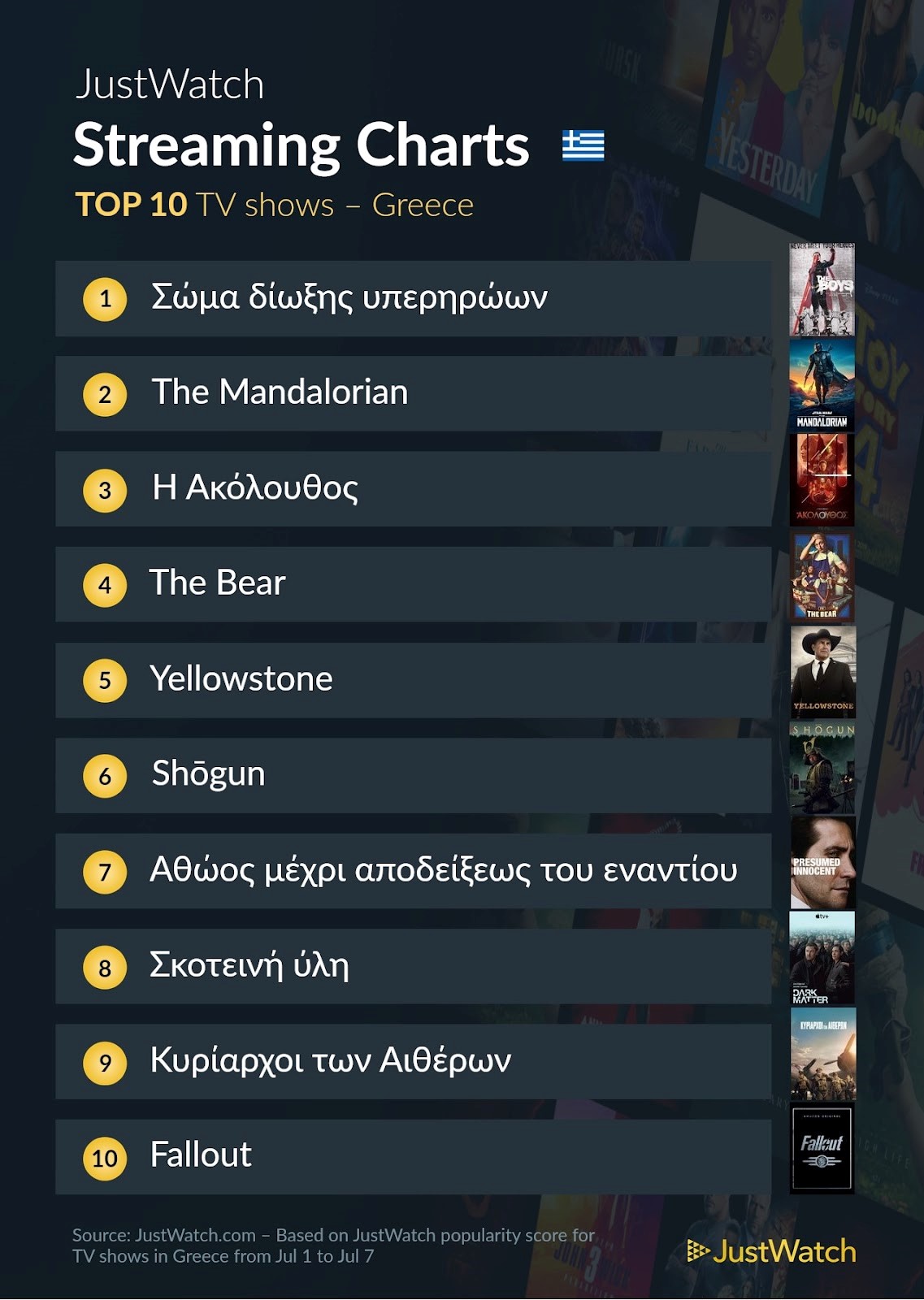 Σε ποιες ταινίες και σειρές στράφηκε ελληνικό κοινό τον περασμένο μήνα , σύμφωνα με τα στοιχεία της «JustWatch»;