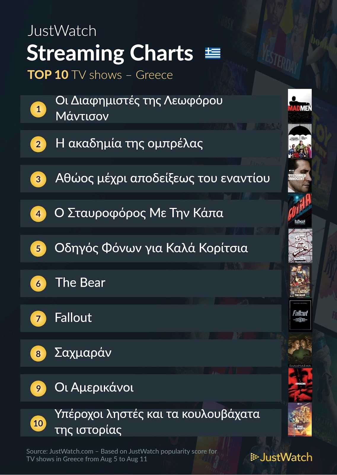 Σε ποιες ταινίες και σειρές στράφηκε ελληνικό κοινό τον περασμένο μήνα , σύμφωνα με τα στοιχεία της «JustWatch»;