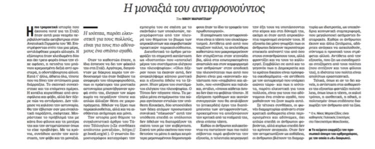 Το άρθρο του Νίκου Μαραντζίδη στην “Καθημερινή της Κυριακής”