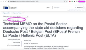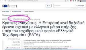 Η πιο γνωστή υπόθεση ελέγχου είναι αυτή που ξεκίνησε τον 2022 και είναι ακόμα ανοιχτή, όπου η Ευρωπαϊκή Επιτροπή ερευνά αν η Ελλάδα έδωσε παράνομες κρατικές ενισχύσεις στα Ελληνικά Ταχυδρομεία. Εξετάζει συγκεκριμένα τρία πράγματα, πρώτον τα ετήσια χρήματα που έπαιρναν τα Ελληνικά Ταχυδρομεία για να καλύψουν το κόστος της καθολικής υπηρεσίας, δηλαδή της υποχρέωσης να πηγαίνουν γράμμα ή δέμα ακόμα και στο πιο απομακρυσμένο χωριό με την ίδια τιμή. Δεύτερον, τις ειδικές εκπτώσεις που έκαναν σε μεγάλους πελάτες. Και τρίτον, την απαλλαγή από τον φόρο προστιθέμενης αξίας σε κάποιες υπηρεσίες. Η Επιτροπή διερευνά αν αυτά τα πλεονεκτήματα έβλαψαν τις ιδιωτικές εταιρείες ταχυμεταφορών, εκ των οποίων μία είχε κάνει και την καταγγελία για αθέμιτο ανταγωνισμό κλπ. Δεν είναι όμως η πρώτη φορά.