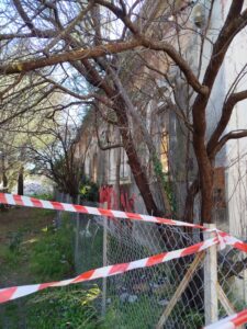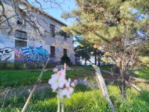 Δεν είναι μόνο το Κόδρα. Όλο το παραθαλάσσιο μέτωπο είναι βυθισμένο στην ίδια γκρίζα αβεβαιότητα. Ιδιοκτησιακό καθεστώς θολό, διεκδικήσεις και γραφειοκρατία από παντού. Το 2014 χαρακτηρίστηκε χώρος πρασίνου και… αναψυχής με απαγόρευση δόμησης. Το 2018 παραχωρήθηκε για 99 χρόνια στον Δήμο Καλαμαριάς και από τότε διεκδικεί εκατομμύρια για ανάπλαση όμως ακόμη δεν άρχισε καν. Τον 19ο αιώνα, εδώ λειτουργούσε ένας από τους μεγαλύτερους στρατώνες στα Βαλκάνια. Εγινε βάση συμμαχικών στρατευμάτων για το Μακεδονικό Μέτωπο. Στη συνέχεια πέρασε στον ελληνικό στρατό, μέχρι που έκλεισε οριστικά -υποτίθεται- για καλύτερα. Τα κτίρια είναι διατηρητέα και η πινακίδα της εισόδου γράφει 16, όμως καλύτερα να υπολογίσουμε 15 συν ένα καμμένο ή ίσως ακόμη λιγότερα αφού είδαμε και ένα που έχει καταρρεύσει. (Τα πιο γνωστά, όπου γίνονται και κάποιες εκδηλώσεις, είναι οι Στάβλοι Αλόγων, το Κτίριο Στρατωνισμού, το Κτίριο Διοίκησης-Κέντρο Ψυχαγωγίας, οι παλιοί κοιτώνες της Αγγλικής Σχολής Ιππικού και το Αναρρωτήριο Προσωπικού).