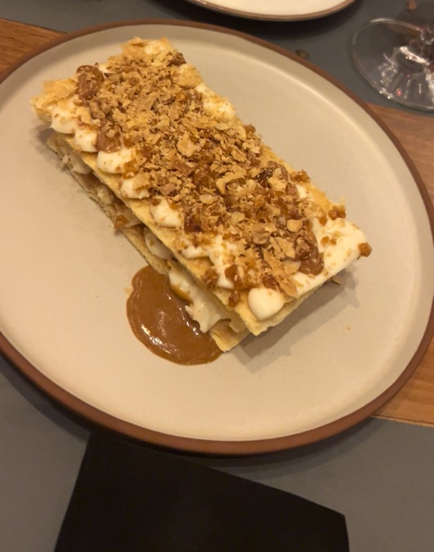 Η εμπειρία ολοκληρώνεται με γλυκές προτάσεις που ισορροπούν ανάμεσα στη νοσταλγία και τη σύγχρονη απόλαυση: ζεστό soft cookie με παγωτό βανίλια, mille-feuille με κρέμα λευκής σοκολάτας αρωματισμένη με τόνκα και κροκάν φουντουκιού, καθώς και πορτοκαλόπιτα με παγωτό καϊμάκι.