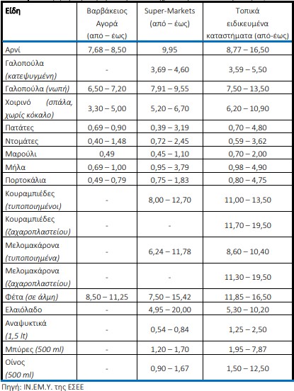 Συγκεκριμένα, όπως αναφέρεται στην ανακοίνωση: «το Ινστιτούτο Εμπορίου και Υπηρεσιών της Ελληνικής Συνομοσπονδίας Εμπορίου και Επιχειρηματικότητας (ΙΝ.ΕΜ.Υ. της ΕΣΕΕ) προέβη σε εκτίμηση του κόστους του χριστουγεννιάτικου τραπεζιού για το 2021. Καταγράφηκαν, με επιτόπια τιμοληψία και συνεντεύξεις με key-informers της αγοράς, οι τιμές τόσο από αλυσίδες σούπερ μάρκετ όσο και από ειδικευμένα καταστήματα λιανικής (πχ ζαχαροπλαστεία/ κρεοπωλεία κτλ), καθώς και από τη Βαρβάκειο αγορά. Η εκτίμηση του κόστους για το φετινό χριστουγεννιάτικο τραπέζι (6-8 ατόμων) κυμαίνεται από 82,56 έως 113,90 ευρώ. Πρόκειται για μεταβολή της τάξης του 9,3 % έως 18,5 % σε σύγκριση με το αντίστοιχο τραπέζι του 2020. Υπενθυμίζουμε ότι η αγορά των Χριστουγέννων 2020 λειτούργησε υπό καθεστώς lock down. Το εύρος των τιμών δικαιολογείται από την καταγραφή σειράς τιμών από διαφορετικής ποιότητας προϊόντα, σε αρκετές τοπικές αγορές και αλλά και είδη καταστημάτων. Επιπρόσθετα, διευκρινίζεται ότι οι τιμές των προϊόντων είναι ενδεικτικές και επιχειρούν να χαρτογραφήσουν τη γενική κατανομή τιμών και την εικόνα της αγοράς».
