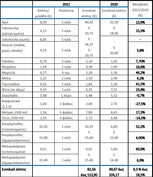 Δείτε αναλυτικά τις τιμές αγαθών σε σύγκριση με το 2020.