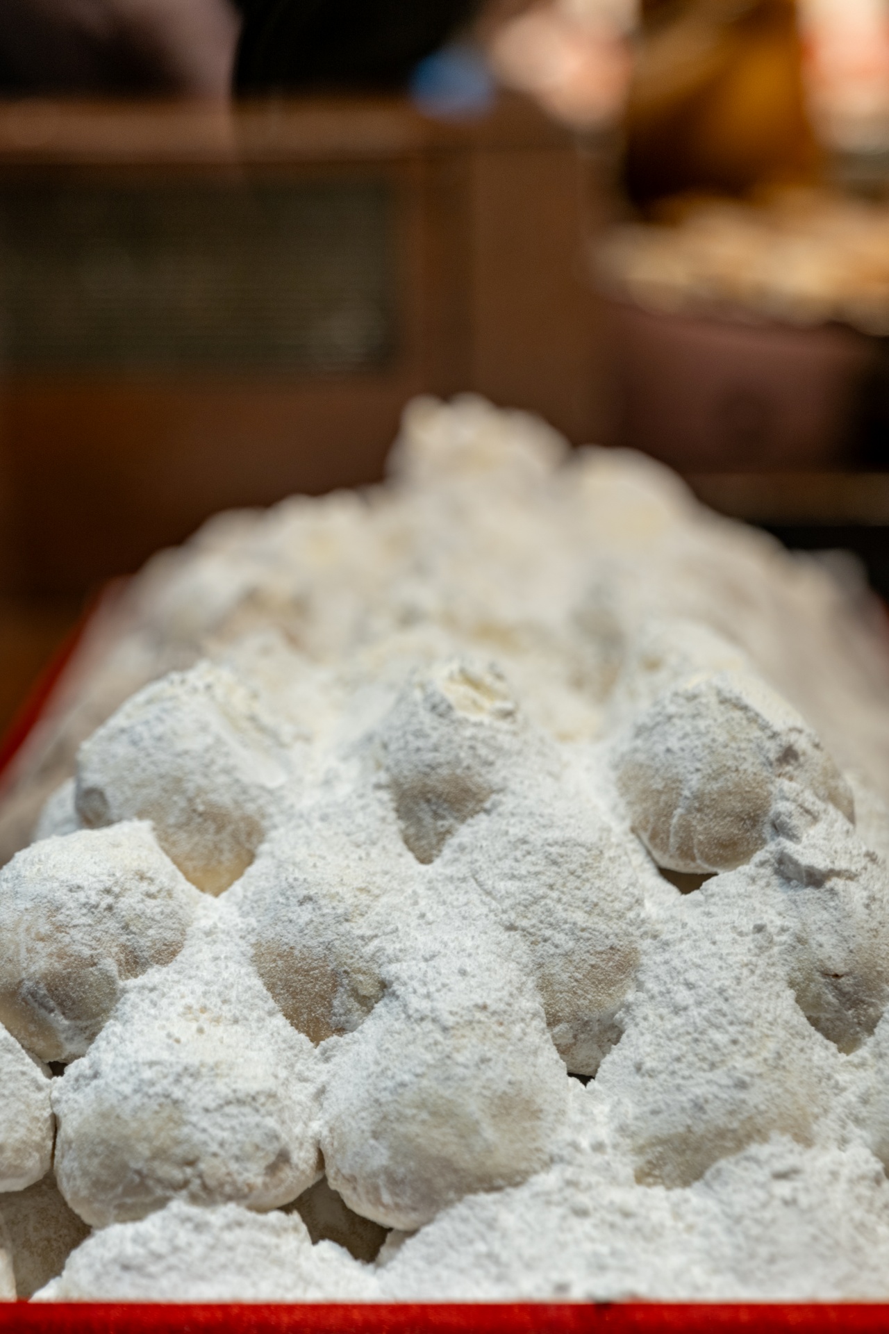 Σκεπτόμενοι τα τελευταία μας ψώνια, φτάνοντας στα δυο γιορτινά γλυκίσματα, αναρωτηθήκαμε από που θα τα προμηθευτούμε, στις κλασικές μορφές τους ή σε πιο ιδιαίτερες παραλλαγές τους και έτσι ανακαλύψαμε τα καλύτερα μελομακάρονα και τους πιο αφράτους κουραμπιέδες της Θεσσαλονίκης.