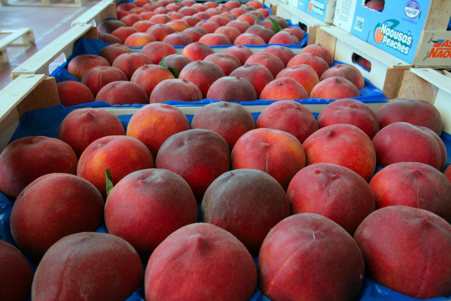 Η ναυαρχίδα του, τα ροδάκινα, εξάγονται σε ποσοστό 30%. Μάλιστα, τα ροδάκινα Νάουσας έχουν αναγνωριστεί ως προϊόν Προστατευόμενης Ονομασίας Προέλευσης (Π.Ο.Π), και είναι τα μοναδικά στην Ελλάδα και από τα ελάχιστα στην Ευρώπη.