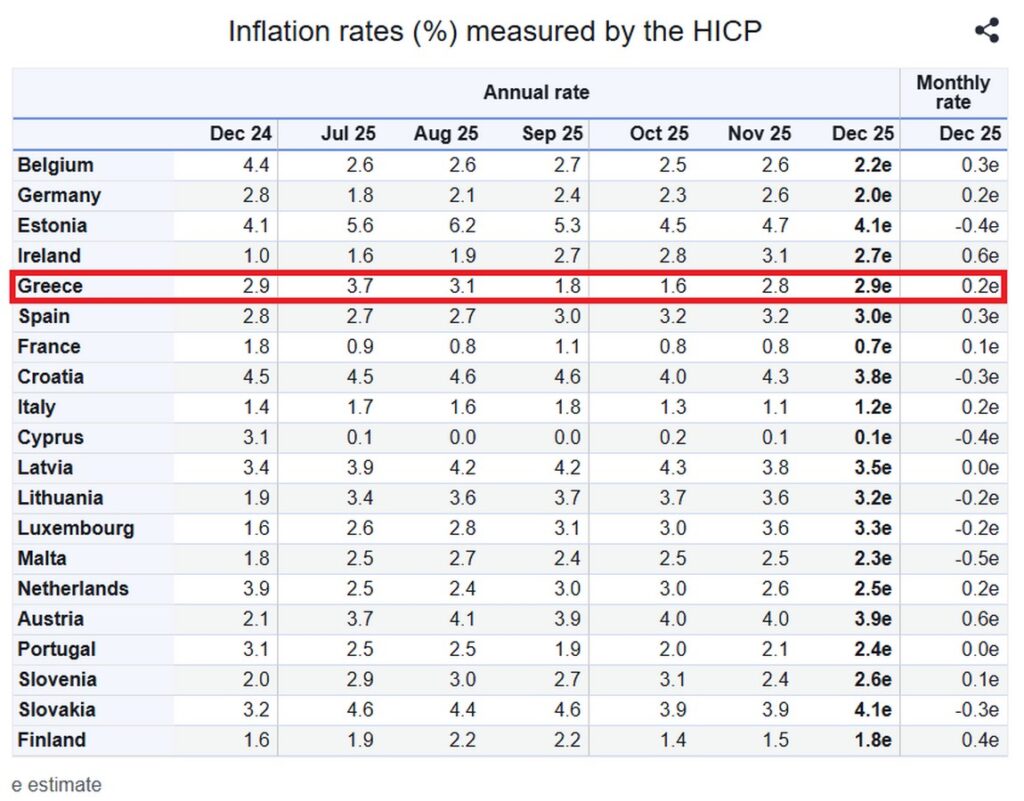Eurostat: Στο 2,9% ο πληθωρισμός στην Ελλάδα – Στο 2% στην Ευρωζώνη