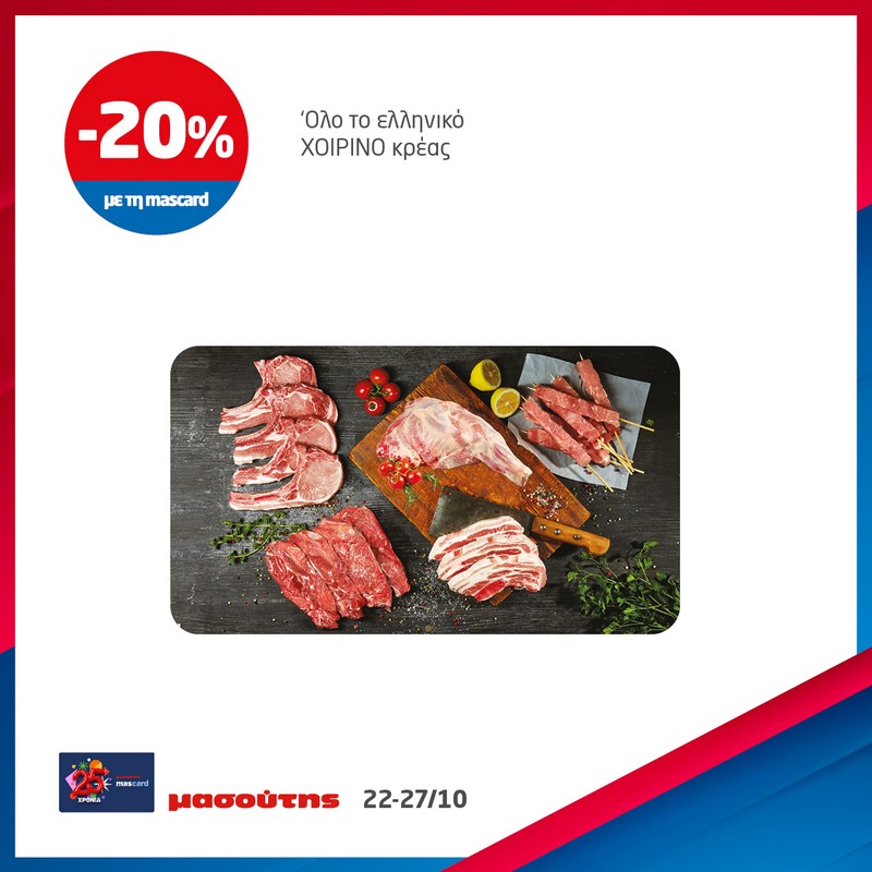 Στα σούπερ μάρκετ Μασούτης, από σήμερα μέχρι και 27/10, θα βρεις όλο το ελληνικό χοιρινό κρέας 20% φθηνότερα με τη Mas Card – ιδανικό για κάθε περίσταση, είτε ψήσεις με φίλους, είτε ετοιμάσεις το εορταστικό φαγητό στο σπίτι.