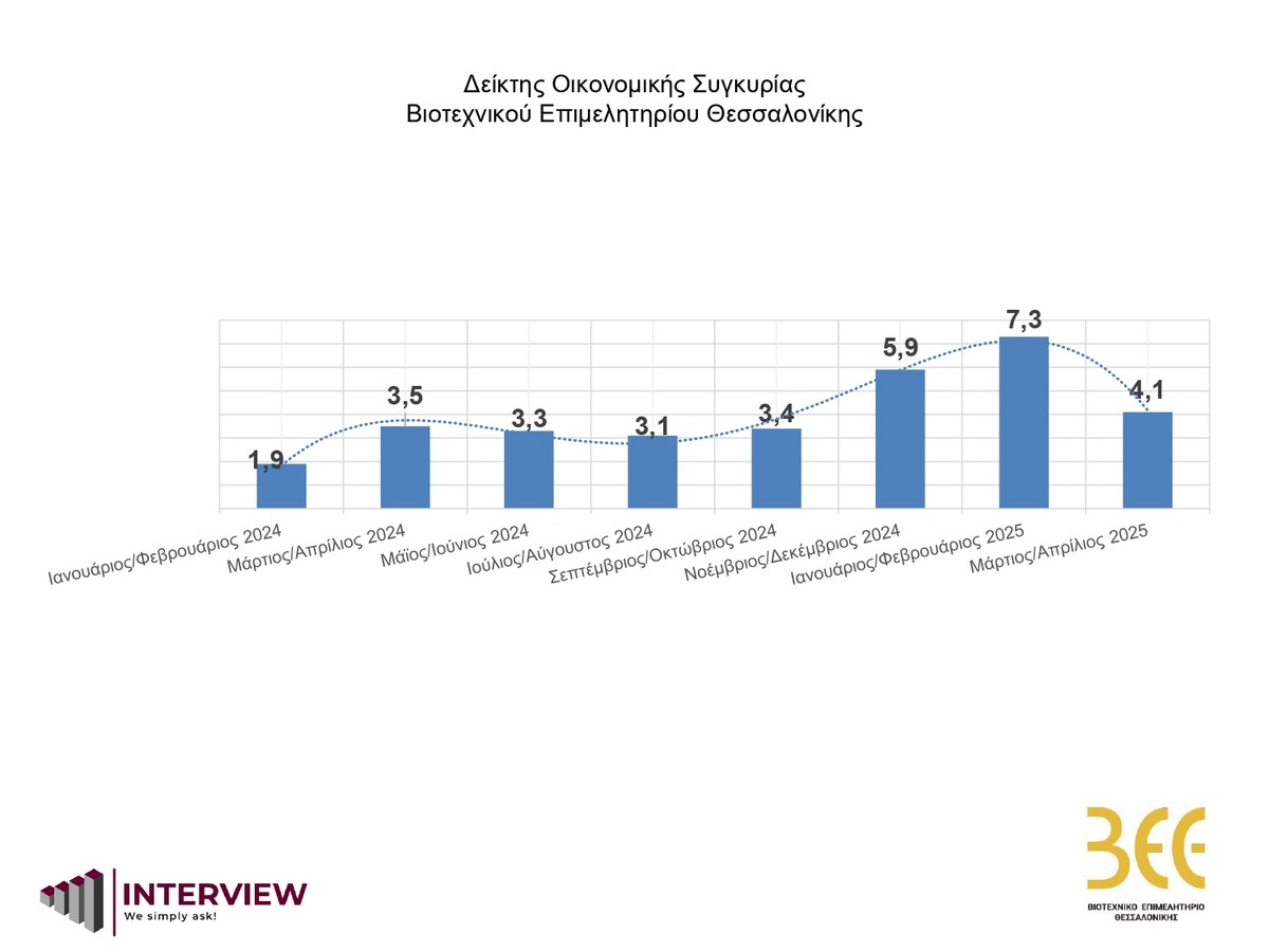 Μειωμένος σε σχέση με το πρώτο δίμηνο του έτους, όποτε ήταν στο 7,3%, εμφανίζεται ο δείκτης οικονομικής συγκυρίας το διάστημα Μαρτίου – Απριλίου καθώς αγγίζει το 4,1%. Σημειώνεται πως είναι μειωμένος σε σχέση και με το δίμηνο Νοεμβρίου – Δεκεμβρίου του 2024, όποτε ήταν στο 5,9%. Αξίζει, πάντως, να σημειωθεί πως στο αντίστοιχο περσινό διάστημα, ήτοι Μαρτίου – Απριλίου του 2024 ο δείκτης οικονομικής συγκυρίας βρισκόταν στο 3,5%.