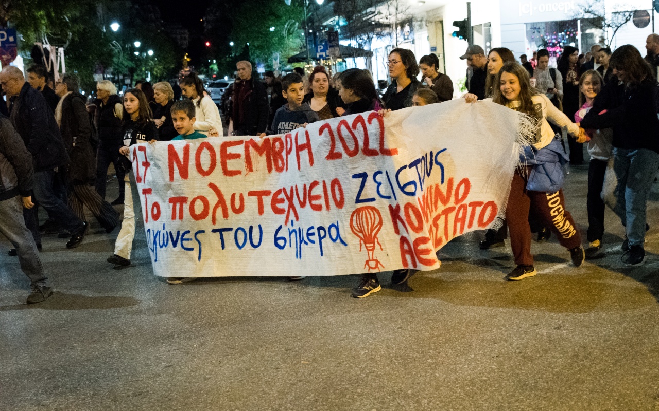Η φετινή επέτειος του Πολυτεχνείου ολοκληρώθηκε χθες βράδυ με μία από τις μαζικότερες πορείες των τελευταίων ετών, τόσο στην πόλη μας όσο και στην πρωτεύουσα και σε άλλες πόλεις της χώρας. Βέβαια τα κανάλια είδαν μόνο 15.000 κόσμο στην Αθήνα και στην Θεσσαλονίκη κερδίζουν οι μαζικές προσαγωγές.