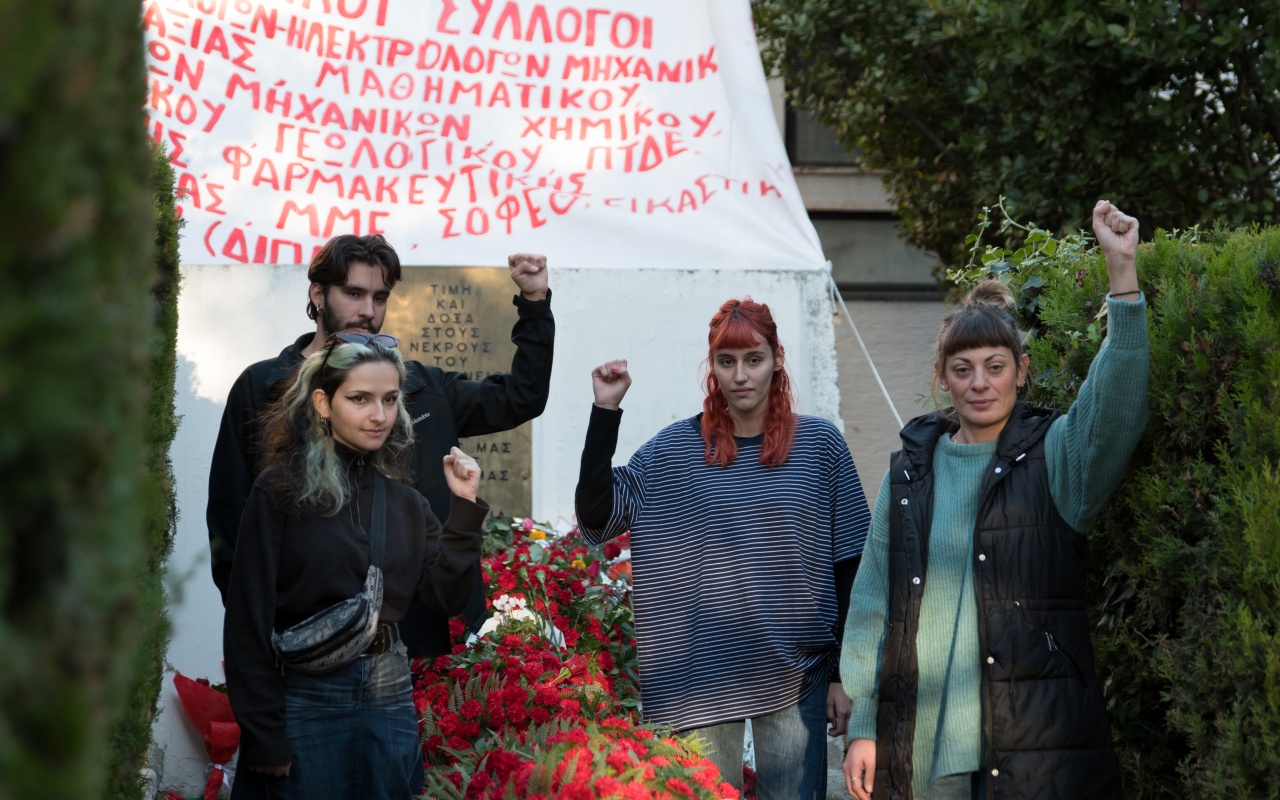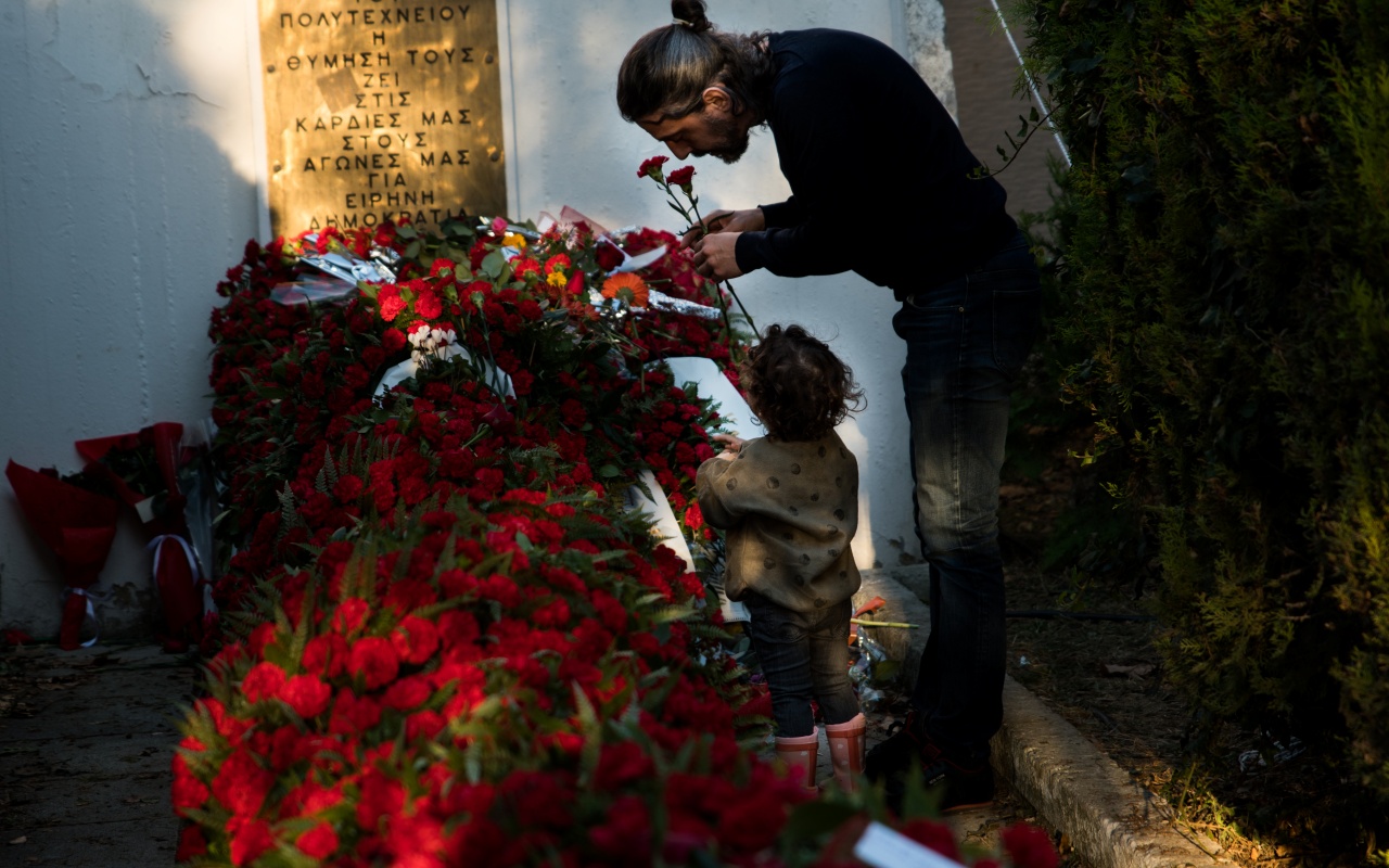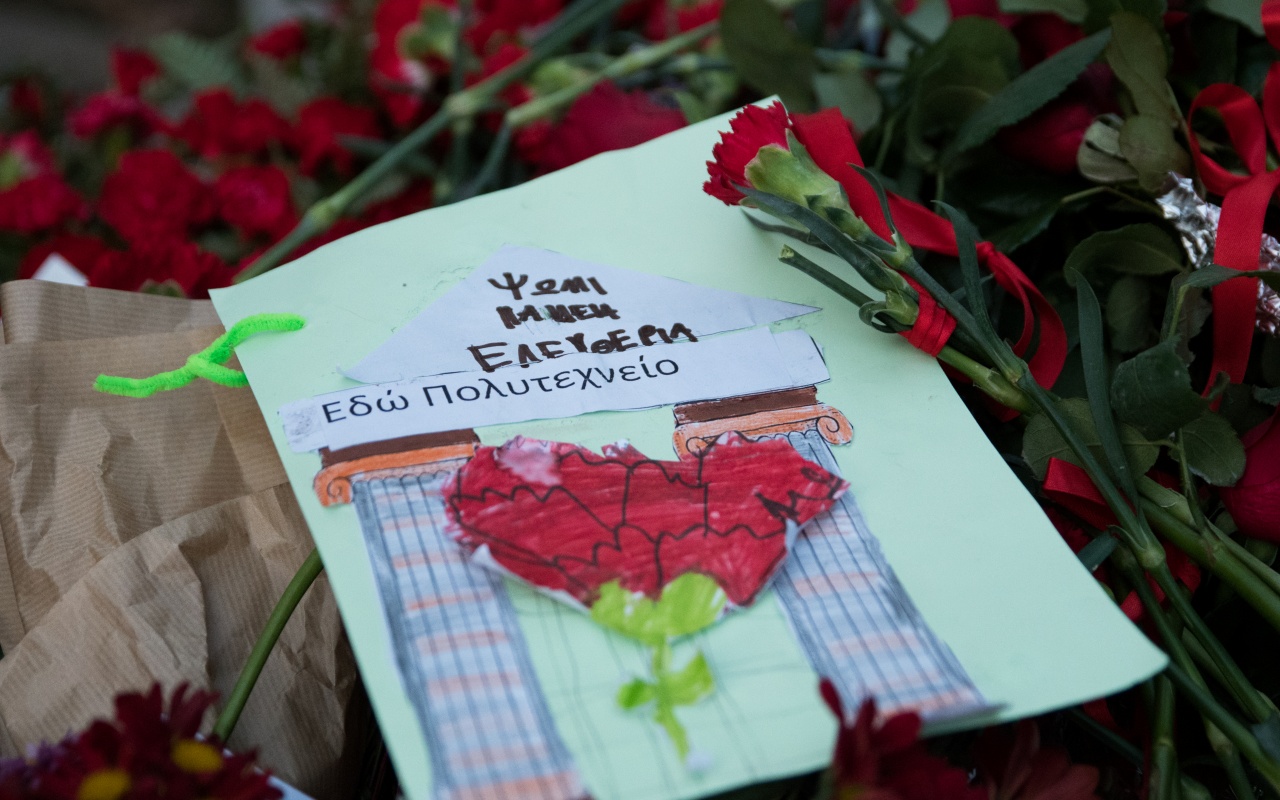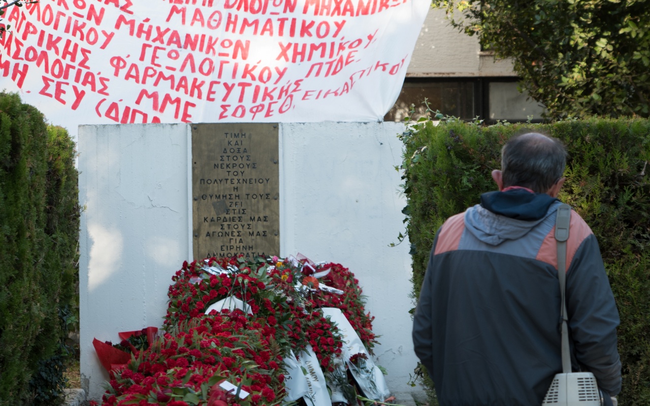 Είδαμε όμως κι άλλες όμορφες εικόνες. Είδαμε ανθρώπους 5 – 95 χρονών να αποτίουν φόρο τιμής στο μνημείο. Μικρά παιδιά περπάτησαν στην πορεία κρατώντας πανό. Γονείς έφεραν τα μωρά τους σκύβοντας πάνω από τα εκατοντάδες λουλούδια για να τους διδάξουν ιστορία. Μιλήσαμε και δακρύσαμε από συγκίνηση με τα λόγια του κ. Θοδωρή που έκανε εξορία στη Γυάρο και στη Λέρο και μας είπε να μείνουμε αγωνιστές ως τέλους. Καθηγητές του πανεπιστημίου επίσης ήταν εκεί κρατώντας πανό για ένα ελεύθερο δημόσιο πανεπιστήμιο.