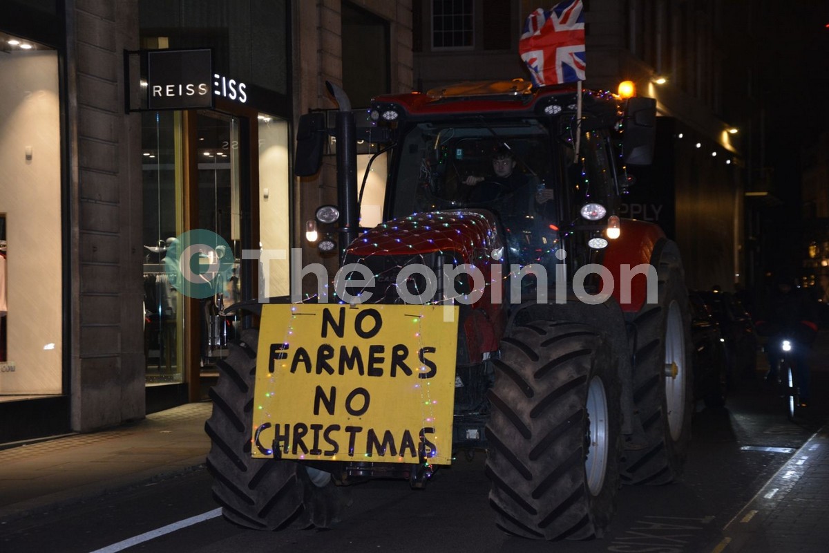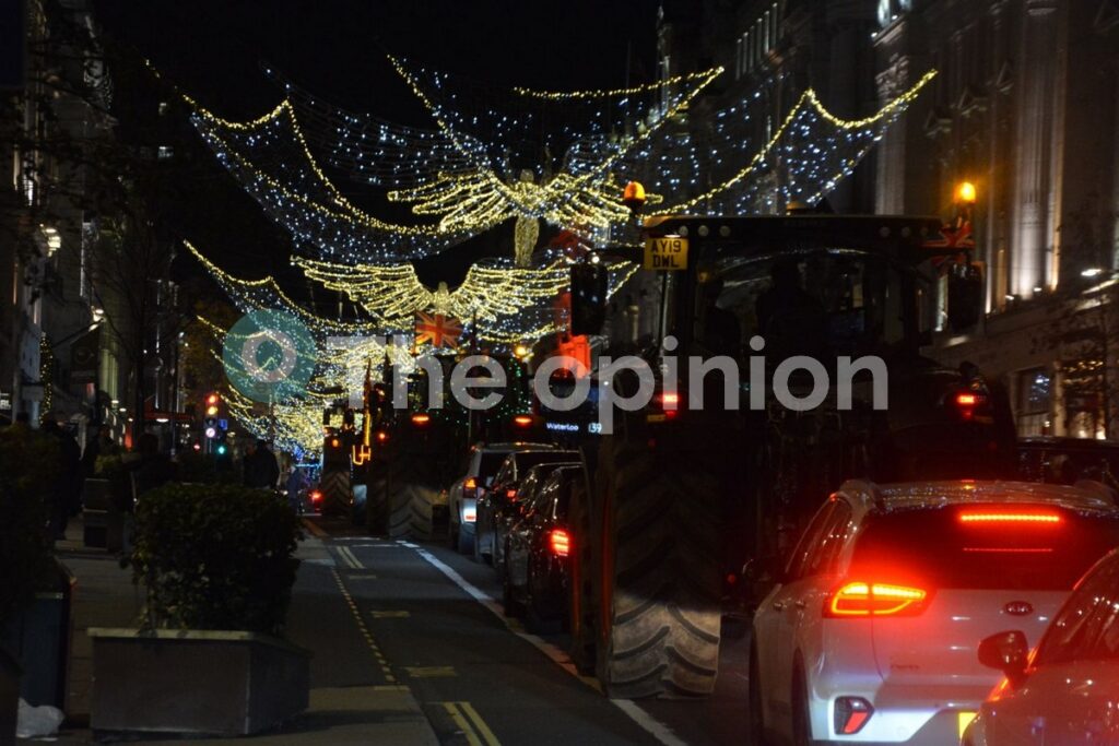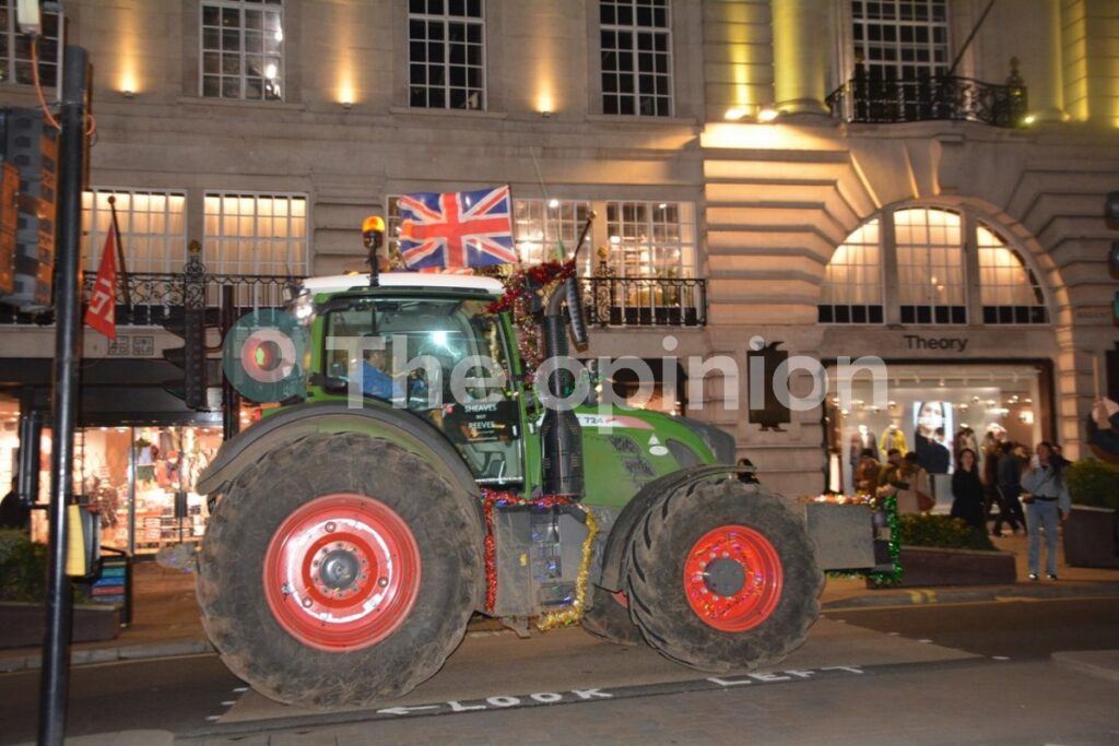 Μια πομπή από είκοσι (20) τρακτέρ στολισμένα με χριστουγεννιάτικα πολύχρωμα φωτάκια πέρασε μπροστά από το Γουέστμινστερ την πολυσύχναστη περιοχή όπου στεγάζεται το κοινοβούλιο, τα Ανάκτορα του Μπάκιγχαμ και η Πλατεία Τραφάλγκαρ, ενώ συνέχισαν προς Πικαντίλι αλλά και τις στολισμένες εμπορικές κεντρικές λεωφόρους Ρέτζεντ και Όξφορντ.