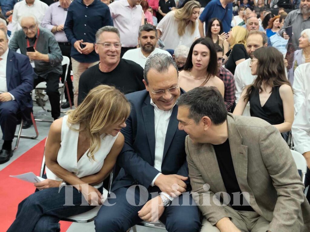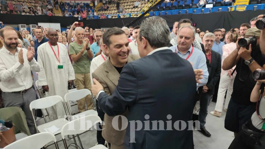 Ξεχώρισε η ψυχρή του χειραψία με τον Παύλο Πολάκη και η θερμή αγκαλιά τόσο με τον Αλέκο Φλαμπουράρη αλλά και τον Γιάννη Δραγασάκη.