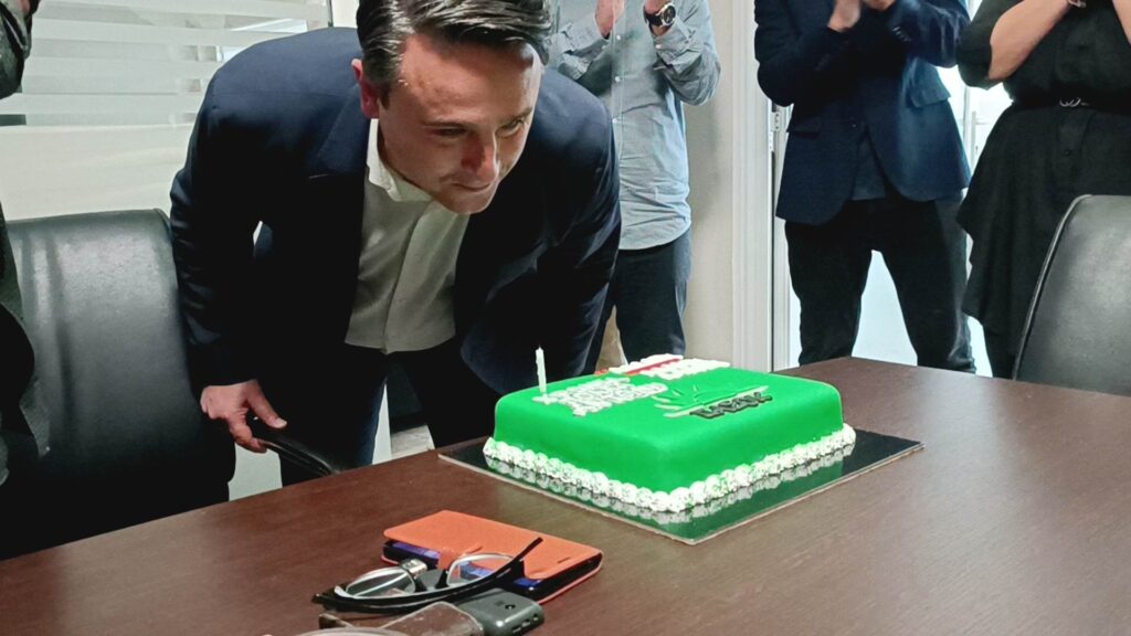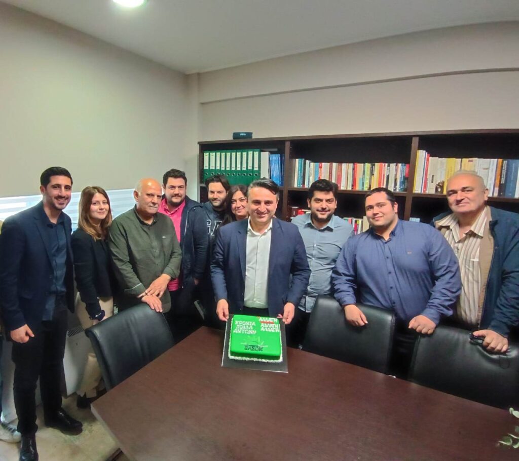 Με μια τούρτα με τον ήλιο του ΠΑΣΟΚ αλλά και το προεκλογικό σύνθημα του Αντώνη Σαουλίδη ευχήθηκαν οι συνεργάτες του για τα γενέθλιά του.