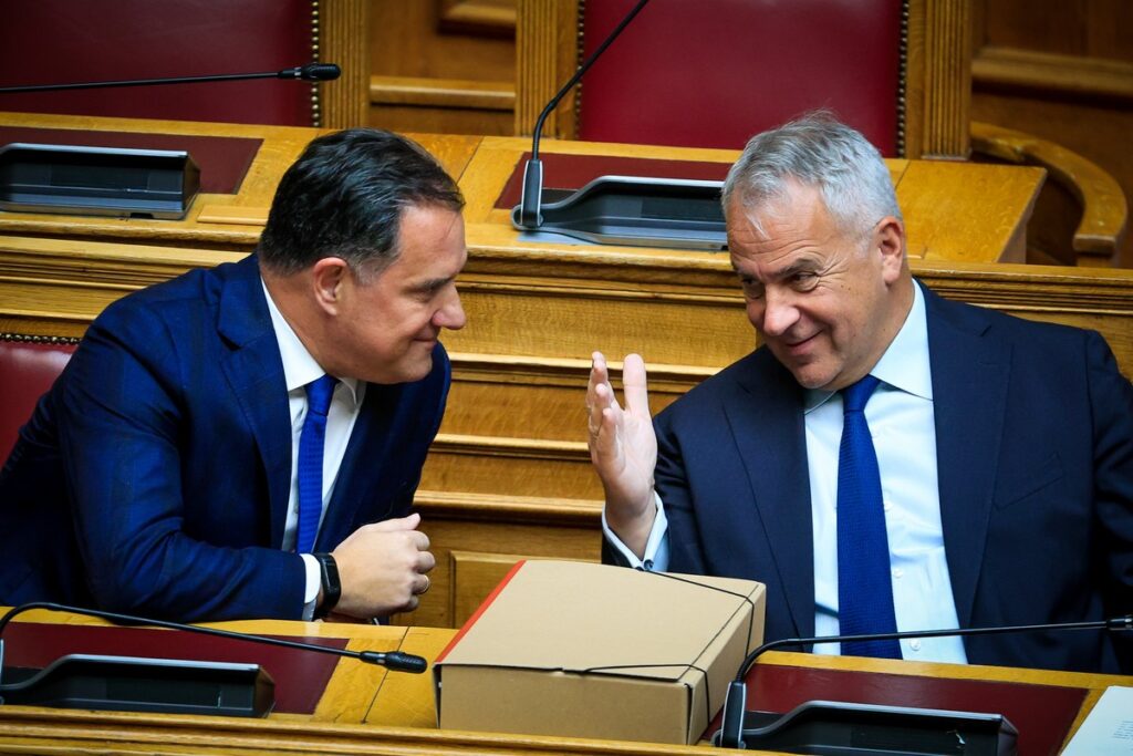 Η αίθουσα της ολομέλειας είναι σχεδόν γεμάτη παρουσία και πολιτικών αρχηγών. Στα υπουργικά έδρανα βρίσκονται οι Μάκης Βορίδης, Γιώργος Φλωρίδης και Άδωνις Γεωργιάδης ως εκπρόσωποι της κυβέρνησης.