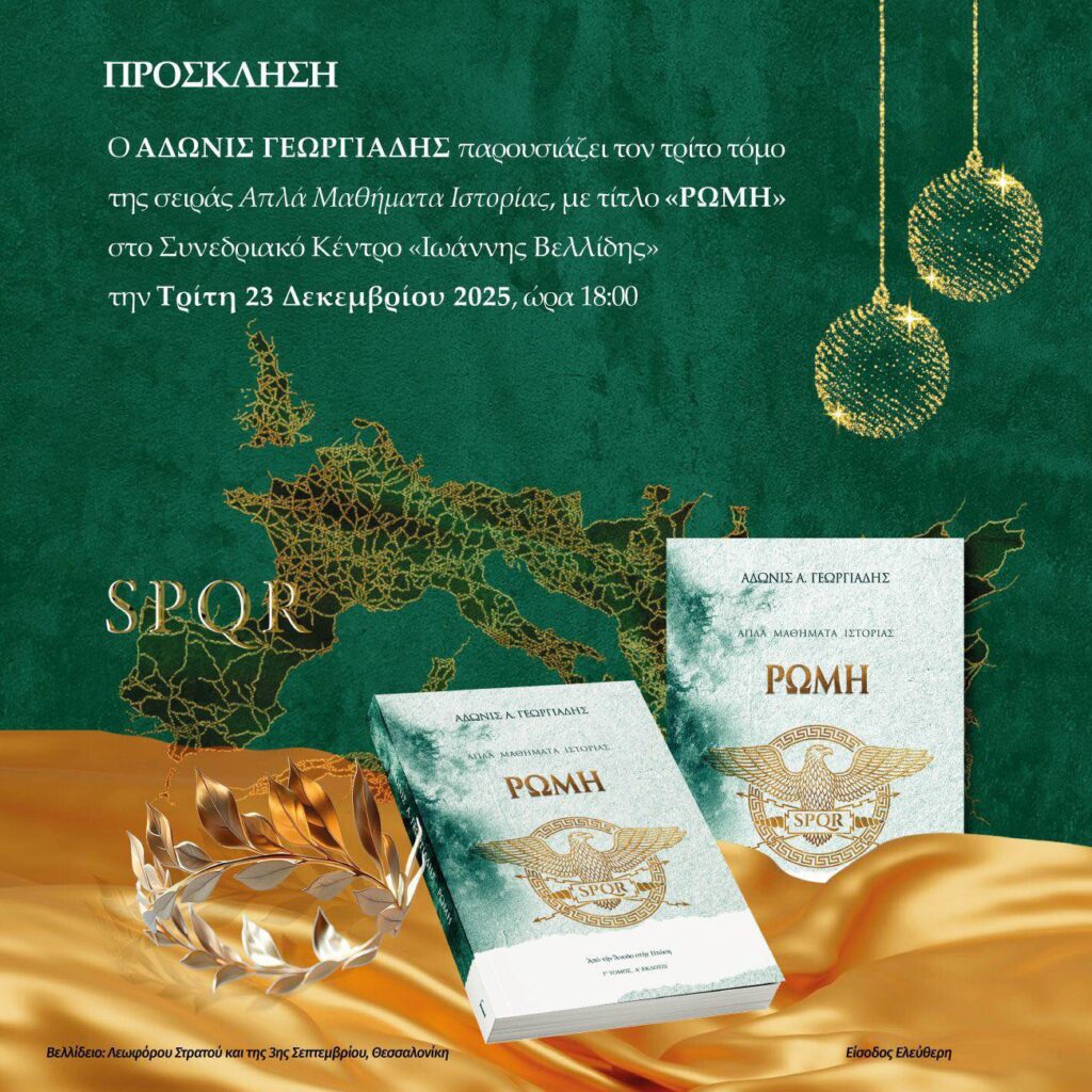 Τη Θεσσαλονίκη επιλέγει ο Άδωνις Γεωργιάδης για επόμενη στάση της παρουσίασης του νέου του βιβλίου της σειράς Aπλά μαθήματα ιστορίας -Ρώμη.
