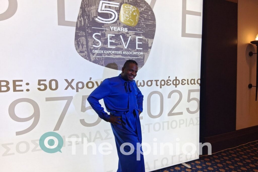 Κομψή φορώντας μαύρο μακρύ κιμονό, παντελόνι ίδιου χρώματος και μια μεγάλη κρυστάλλινη καρφίτσα μοίραζε αστραφτερά χαμόγελα καθ’ όλη τη διάρκεια της εκδήλωσης του ΣΕΒΕ η αμερικανίδα πρέσβης Κίμπερλι Γκίλφοϊλ.