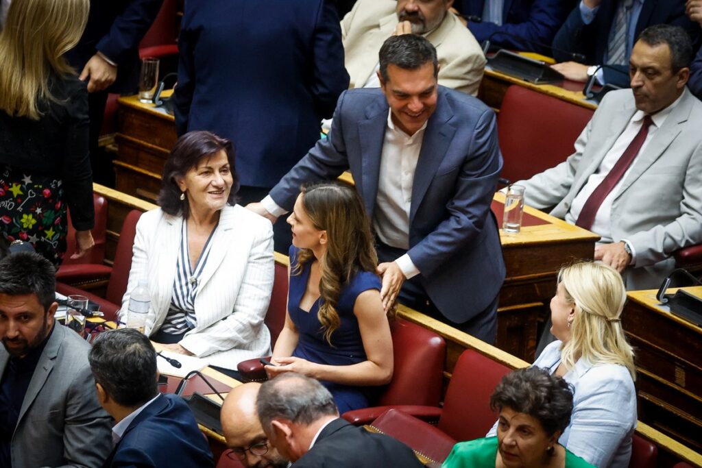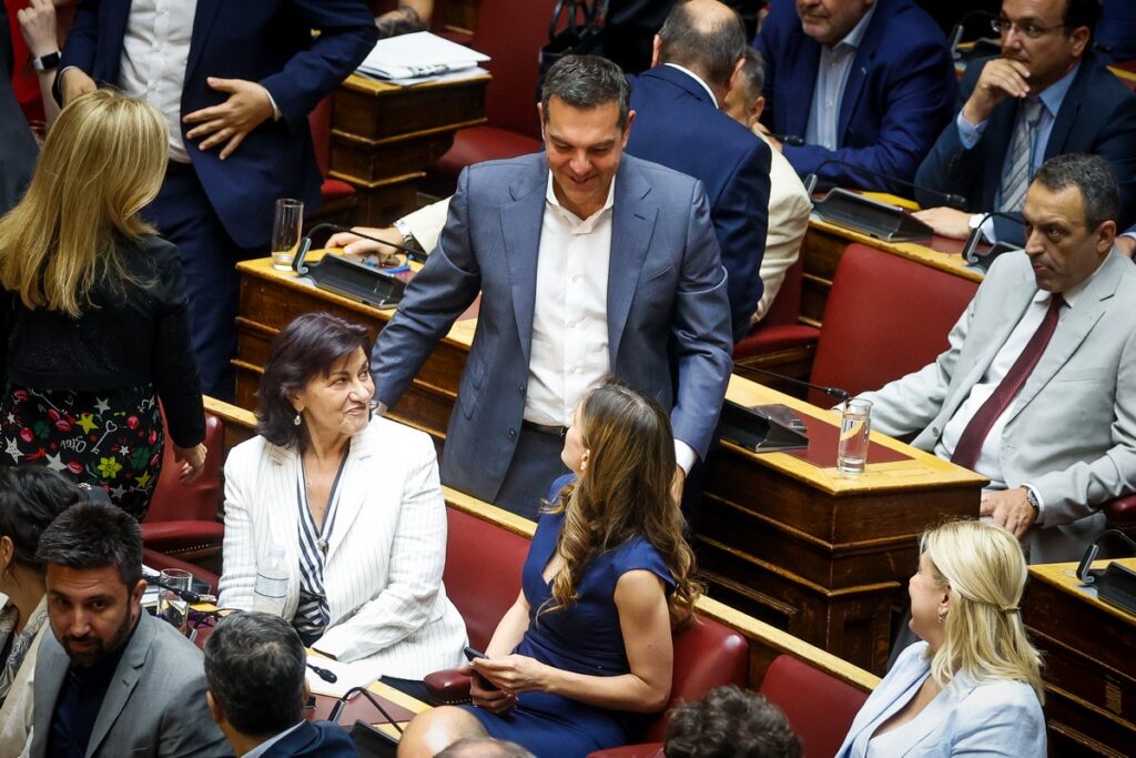 Ο πρώην πλέον πρόεδρος του ΣΥΡΙΖΑ έκανε την εμφάνισή του στην περάτωση της συζήτησης επί των προγραμματικών δηλώσεων για να ψηφίσει πέρασε από την αριστερή πτέρυγα της Βουλής μπροστά από τους βουλευτές της Πλεύσης Ελευθερίας.