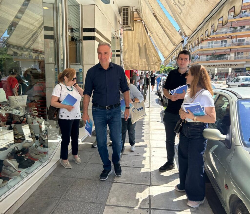 Εδώ και 15 μέρες, μαζί με στελέχη του κόμματος και φίλους της παράταξης και με συγκεκριμένο πρόγραμμα κάθε μέρα σε κάθε δημοτικό διαμέρισμα, οργώνει πόρτα πόρτα τις γειτονιές της Θεσσαλονίκης, επισκέπτεται καταστήματα και λαϊκές αγορές και συναντά τους πολίτες διανέμοντας το ενημερωτικό φυλλάδιο με όλους τους υποψηφίους για τις Ευρωεκλογές και εξηγώντας πόσο σημαντική είναι η συμμετοχή τους.