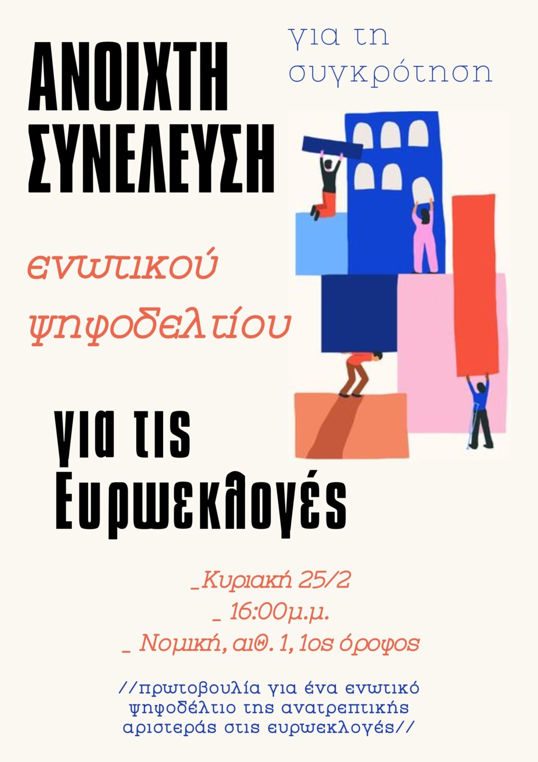 Πρώτη ανοιχτή συνέλευση για ένα ενωτικό ψηφοδέλτιο της ανατρεπτικής Αριστεράς στις ευρωεκλογές.