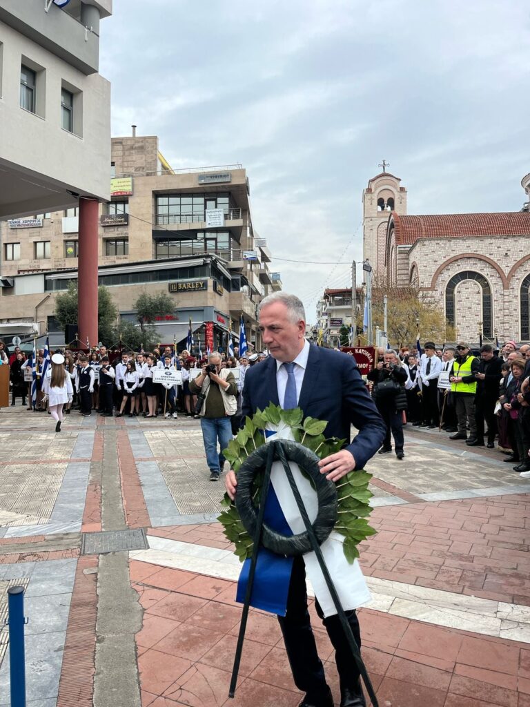 Προτίμησε, όμως, να παρακολουθήσει τη μαθητική παρέλαση στον Εύοσμο, όπου είχε την ευκαιρία να βρεθεί και με αρκετούς προσωπικούς και πολιτικούς του φίλους. Νωρίτερα άναψε ένα κερί στον Ιερό Ναό Ευαγγελισμού Ευόσμου, όπου παρακολούθησε και τη Δοξολογία.