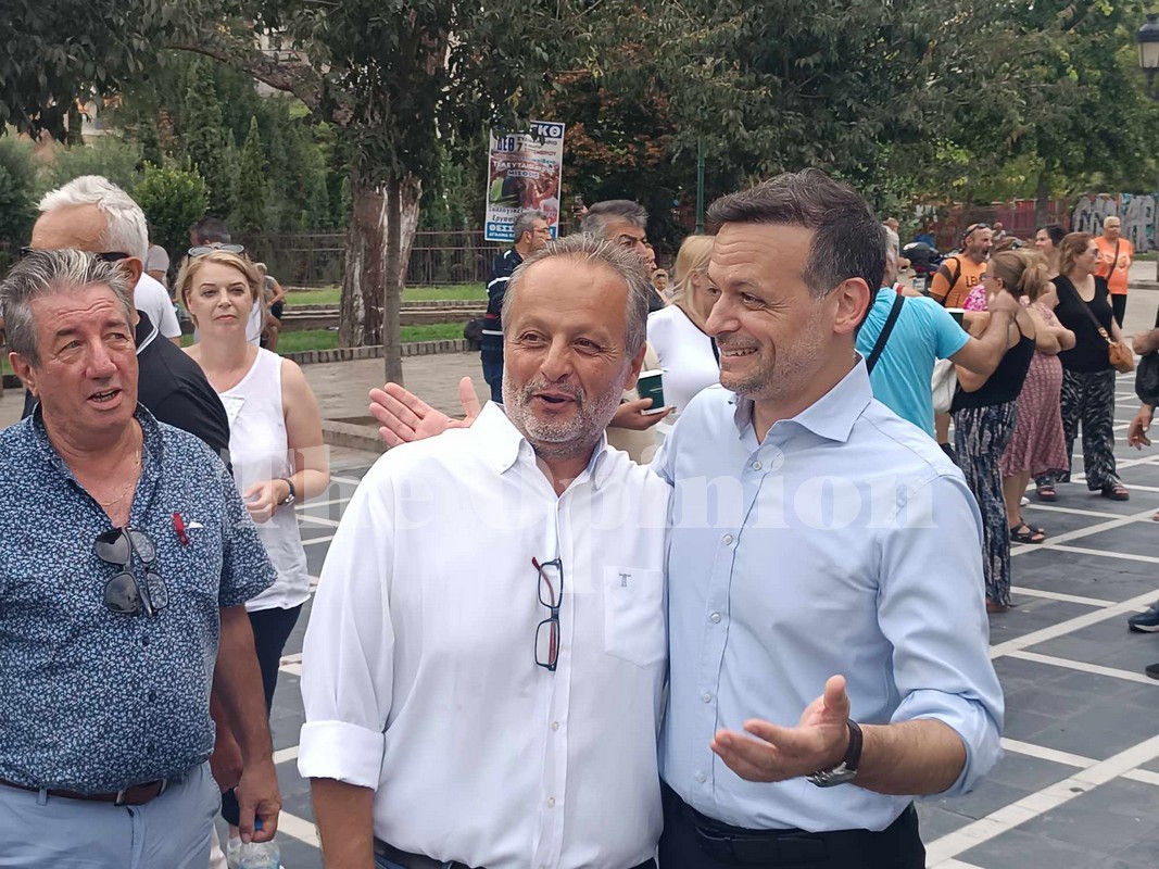 Ο υποψήφιος πρόεδρος του ΠΑΣΟΚ συνομίλησε με τον κόσμο που έσπευδε να του μιλήσει από κοντά.