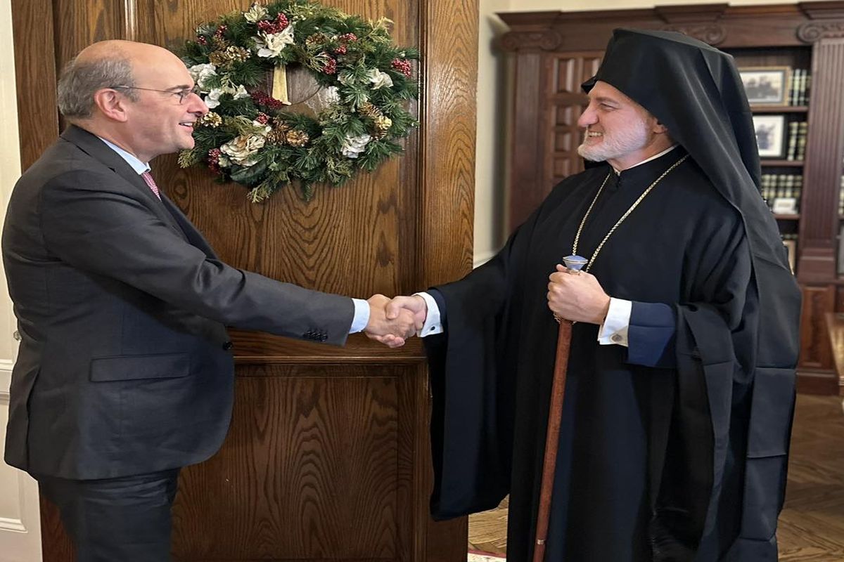 Με τον Αρχιεπίσκοπο Αμερικής Ελπιδοφόρο συναντήθηκε, στο πλαίσιο της επίσκεψής του στις ΗΠΑ, ο αντιπρόεδρος της κυβέρνησης Κωστής Χατζηδάκης.