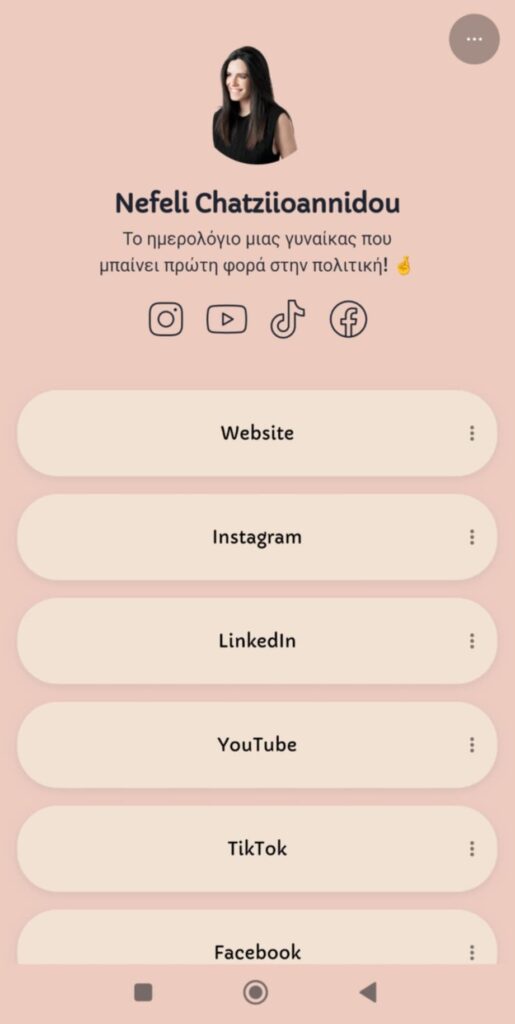 Στην επαγγελματική της κάρτα πέρα από τα στοιχεία της έχει και ένα QR code, το οποίο οδηγεί στο linktree της βουλευτή. Όπου αναφέρεται η φράση «Το ημερολόγιο μιας γυναίκας που μπαίνει πρώτη φορά στην πολιτική!»