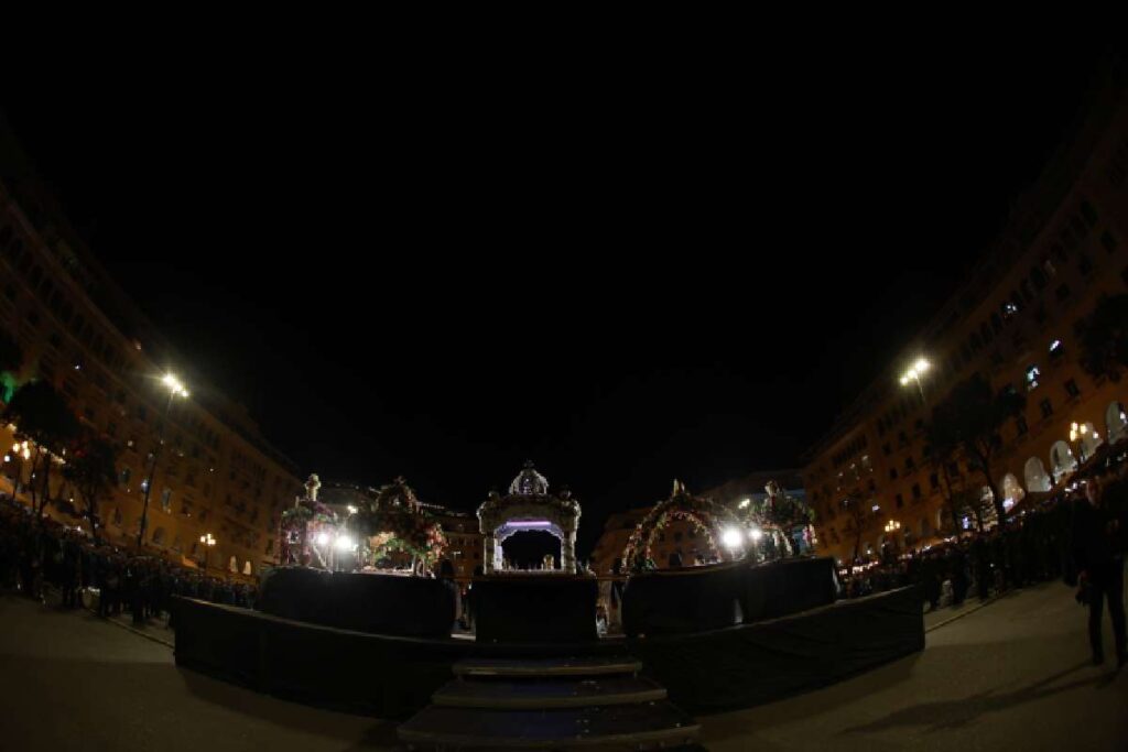 Στην πλατεία Αριστοτέλους συναντήθηκαν το βράδυ της Μεγάλης Παρασκευής πέντε Επιτάφιοι για δεύτερη συνεχόμενη χρονιά.