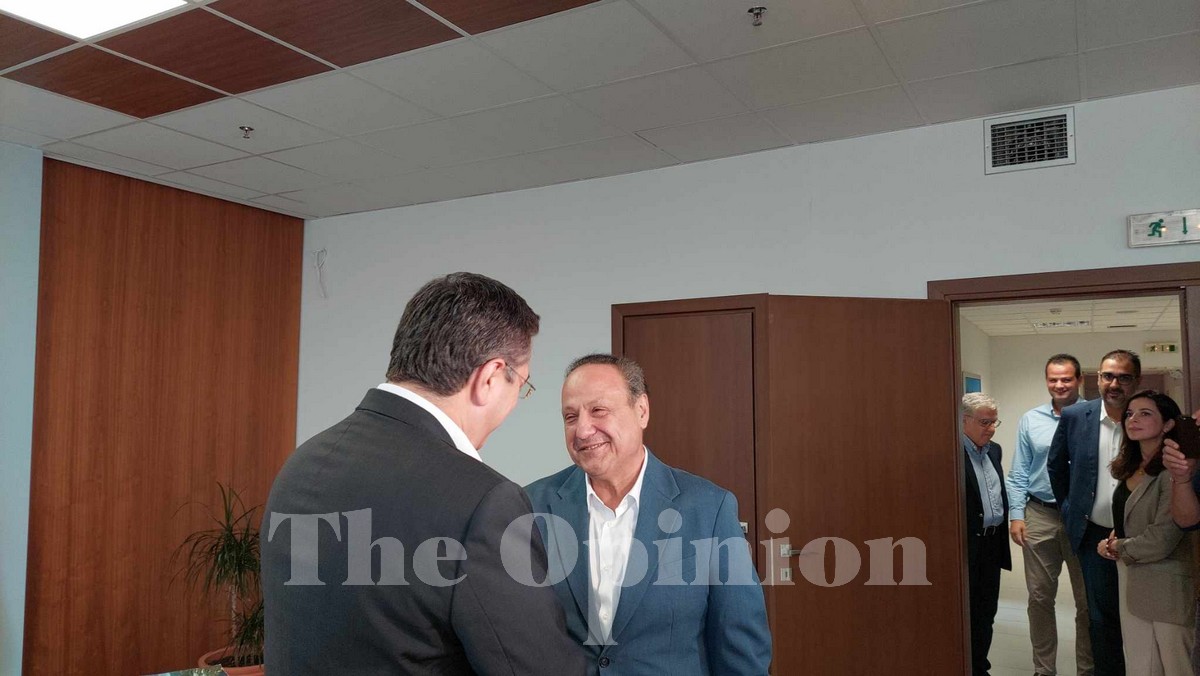 Το νέο δήμαρχο Θεσσαλονίκης, Στέλιο Αγγελούδη, υποδέχθηκε ο περιφερειάρχης Κεντρικής Μακεδονίας, Απόστολος Τζιτζικώστας, στο νέο κτίριο της περιφέρειας στη Θεσσαλονίκη, το μεσημέρι της Τετάρτης.