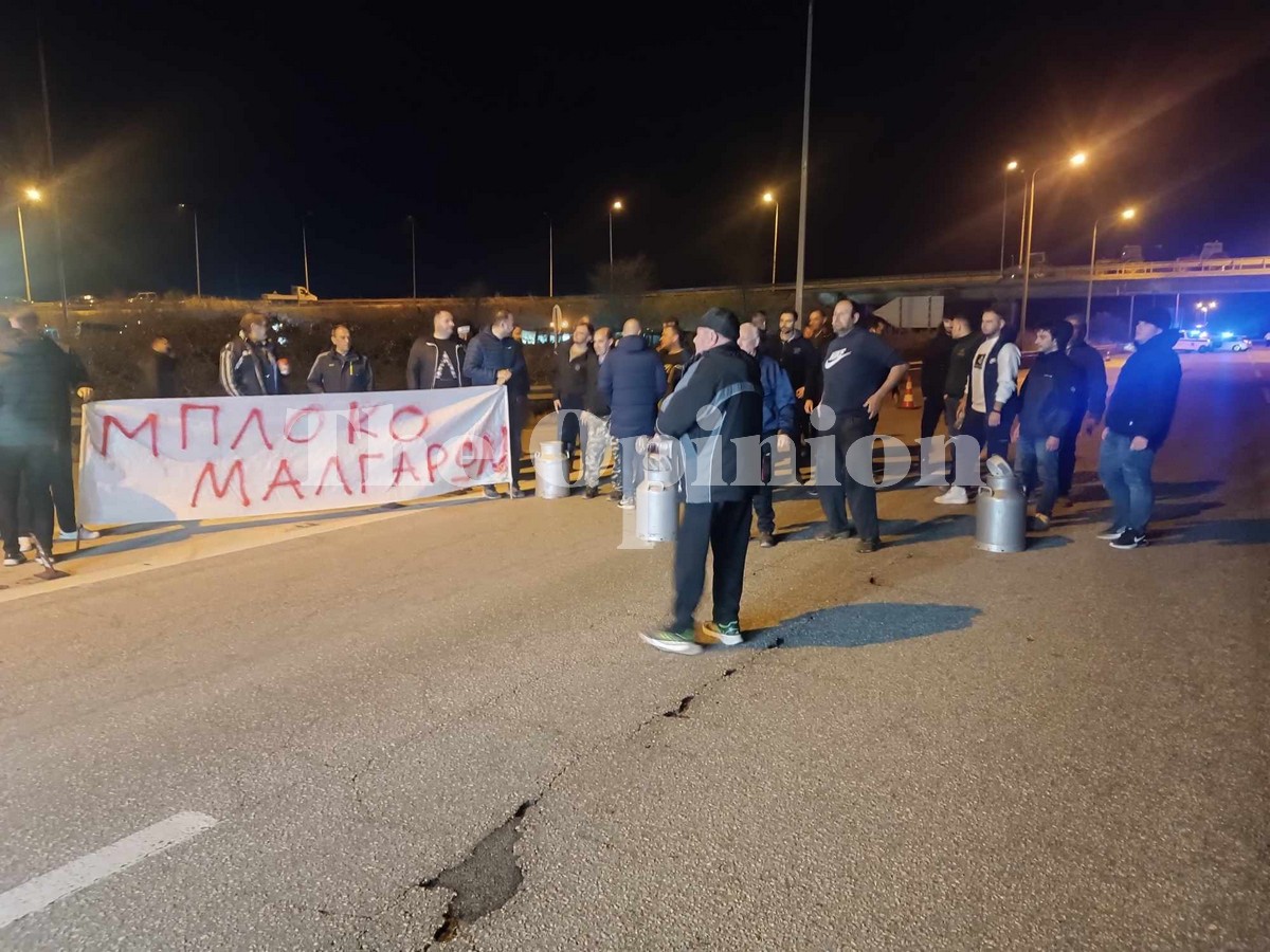 Μάλιστα, κουβάλησαν γάλα, το οποίο και έριξαν στο οδόστρωμα, ενώ γύρω στις 19:15, o δρόμος άνοιξε ξανά.
