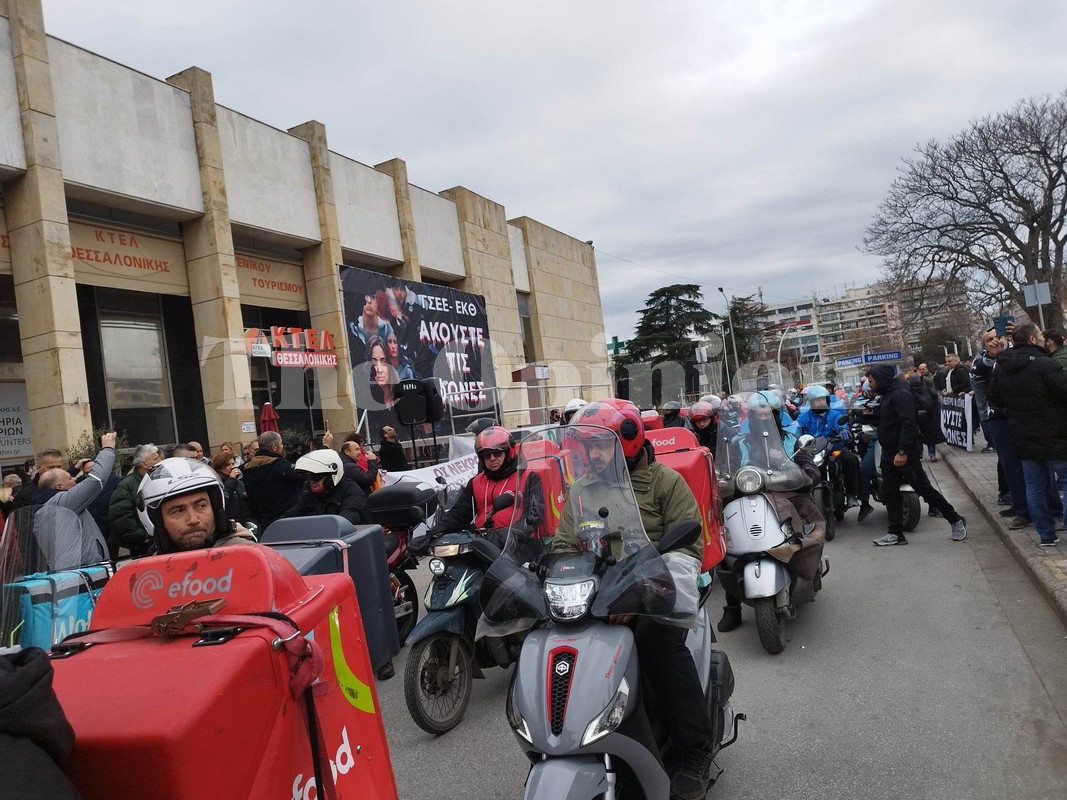 Στη συγκέντρωση συμμετέχουν και διανομείς που πραγματοποιούν μηχανοκίνητη πορεία.