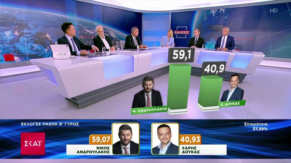 Θρίαμβος για τον Νίκο Ανδρουλάκη που με ποσοστό κοντά στο 60% επανεκλέγεται στην προεδρία του ΠΑΣΟΚ.