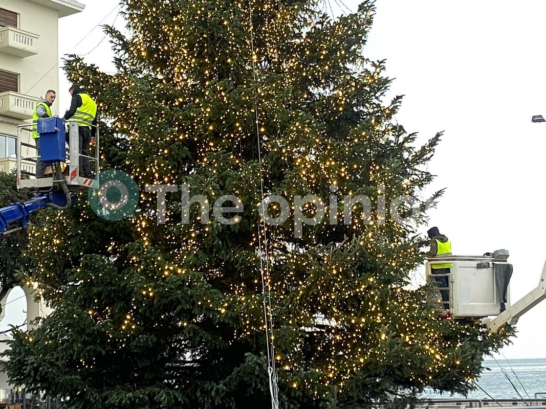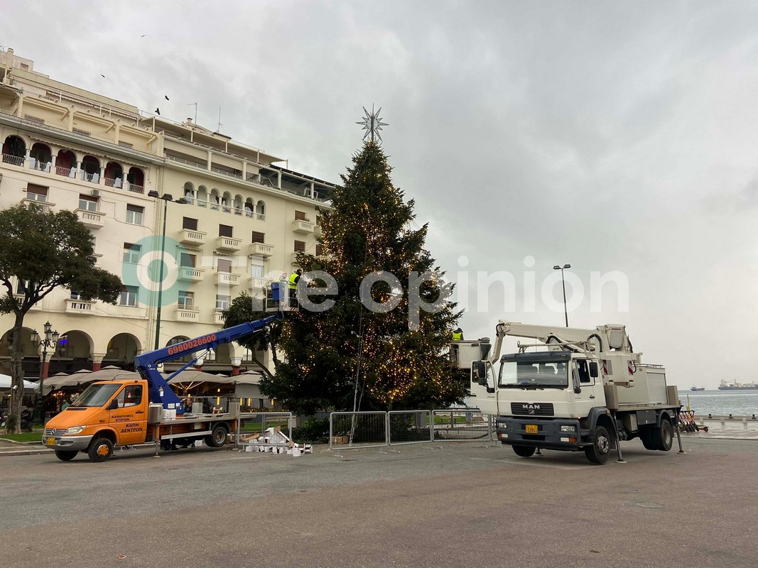 Την ίδια ώρα, η καταιγίδα «δοκίμασε» και τον χριστουγεννιάτικο διάκοσμο στο κέντρο της πόλης. Συνεργεία του Δήμου Θεσσαλονίκης είχαν νωρίτερα τοποθετήσει τα λαμπάκια στο μεγάλο χριστουγεννιάτικο δέντρο της πλατείας Αριστοτέλους.