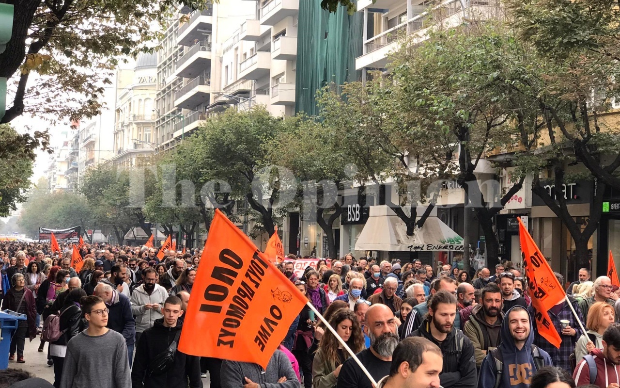 Πάνω από 2.000 άτομα της εξωκοινοβουλευτικής αριστεράς και των πρωτοβάθμιων σωματείων της Θεσσαλονίκης ξεκίνησαν πορεία στο πλαίσιο της σημερινής 24ωρης πανελλαδικής απεργίας, από την Καμάρα.