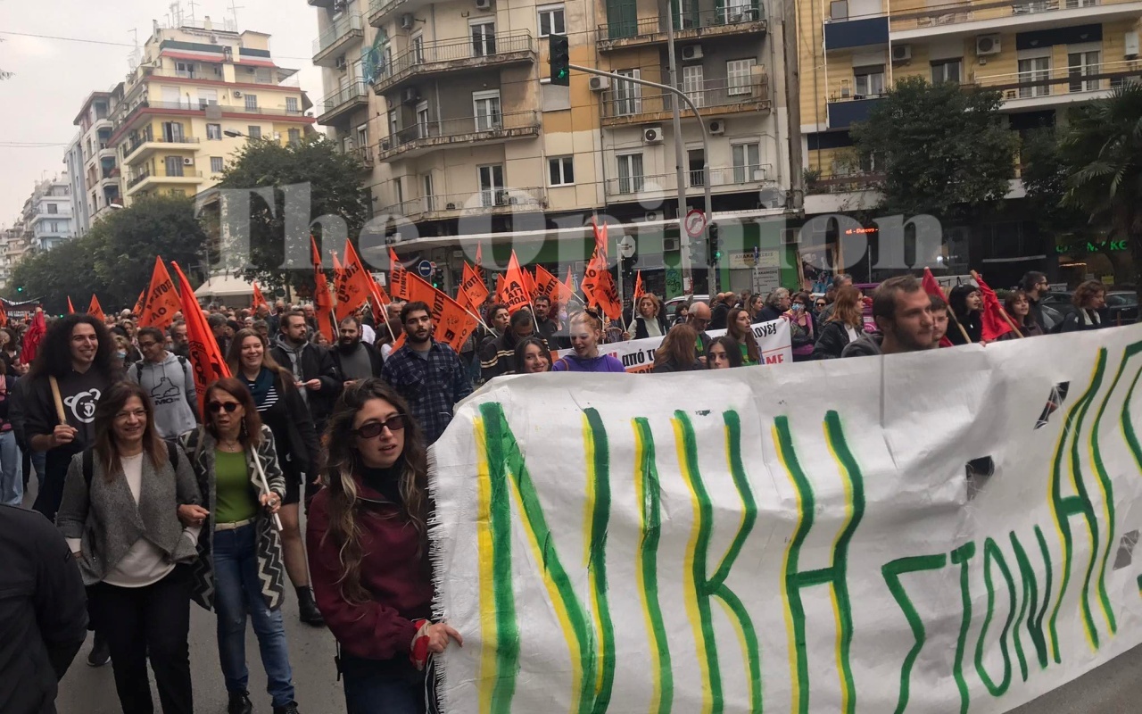 Πάνω από 2.000 άτομα της εξωκοινοβουλευτικής αριστεράς και των πρωτοβάθμιων σωματείων της Θεσσαλονίκης ξεκίνησαν πορεία στο πλαίσιο της σημερινής 24ωρης πανελλαδικής απεργίας, από την Καμάρα.