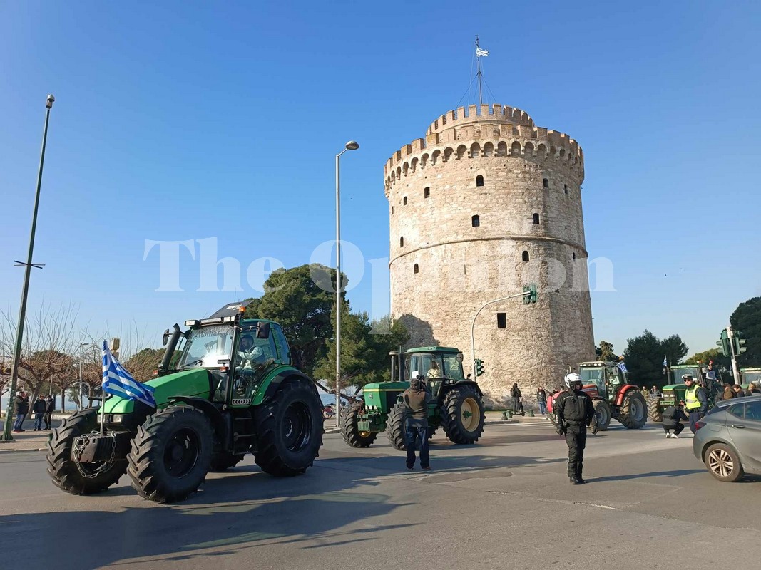 Η κεφαλή της πορείας των αγροτών που έρχονται από Χαλκηδόνα, βρίσκεται στον Λευκό Πύργο.