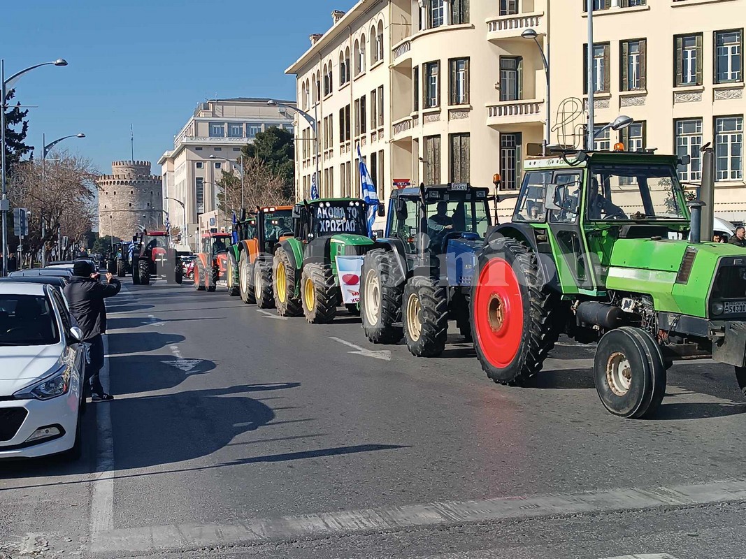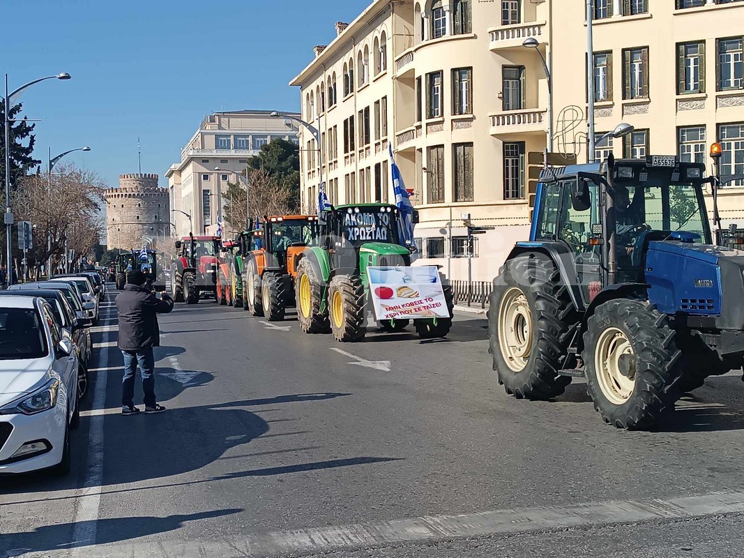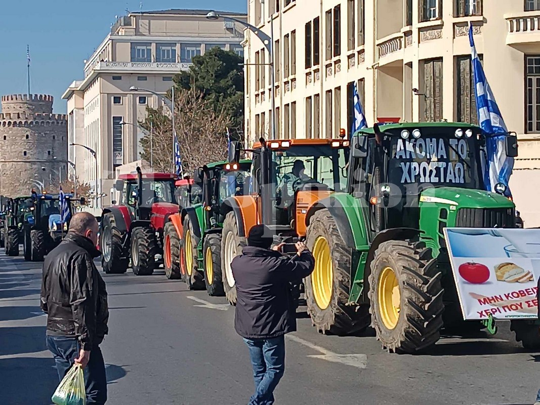 Δεκάδες τρακτέρ από Σέρρες, Πέλλα, Ημαθία, Κιλκίς, Χαλκηδόνα, Δερβένι αλλά και αγροτικά αυτοκίνητα από ανατολική Θεσσαλονίκη και Χαλκιδική, έδωσαν ραντεβού λίγο μετά τις 9 το πρωί στην περιοχή των Σφαγείων από όπου και ξεκίνησαν για το κέντρο της πόλης από τη λεωφόρο Νίκης.